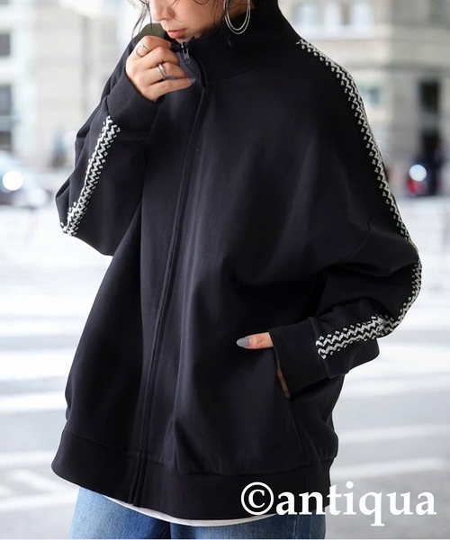 「antiqua」 ジップアップブルゾン P ブラック レディース