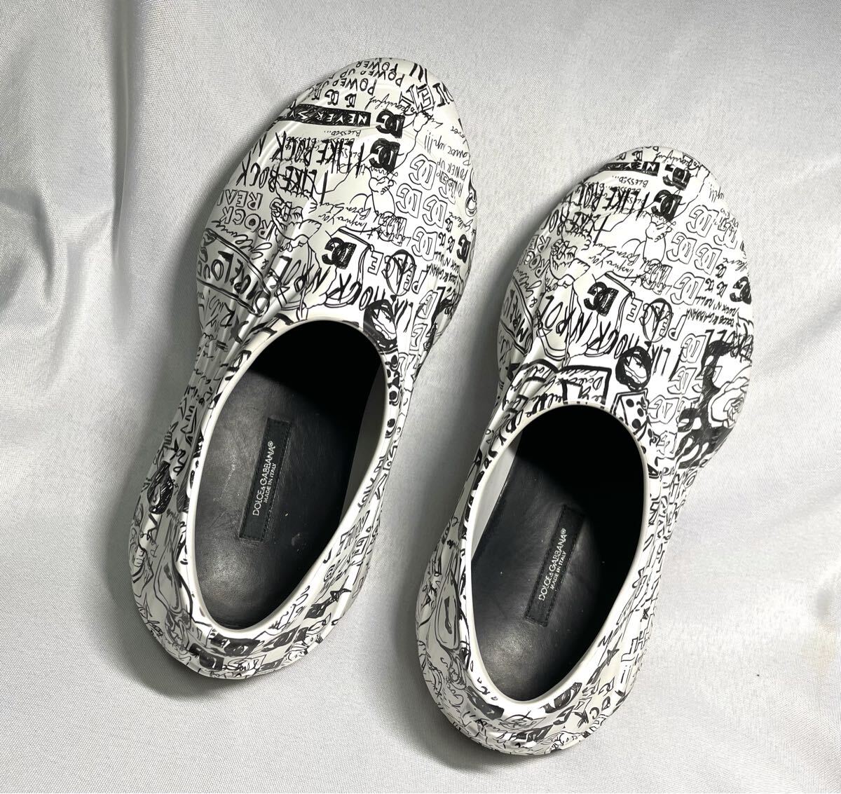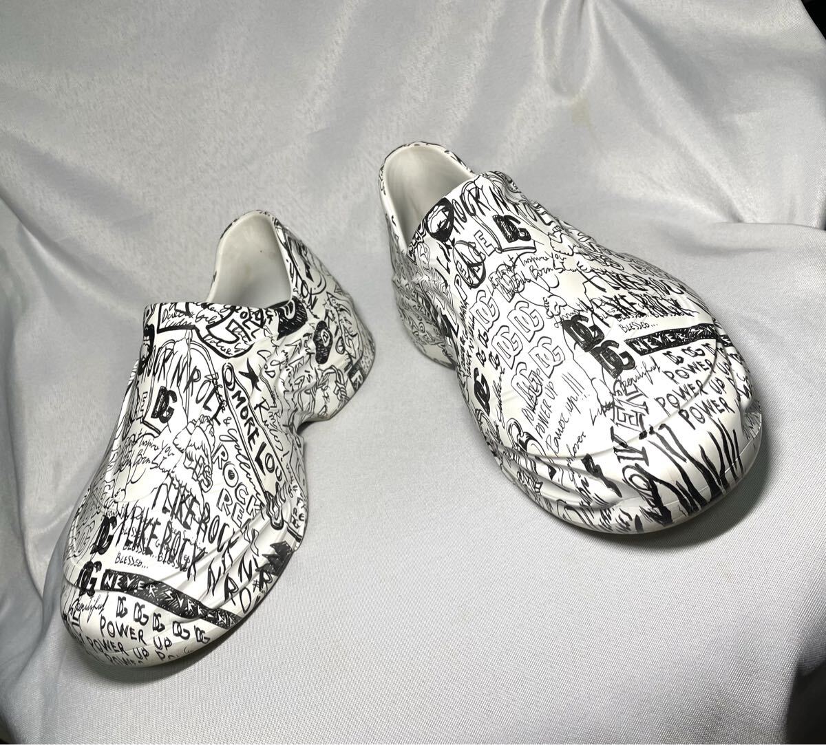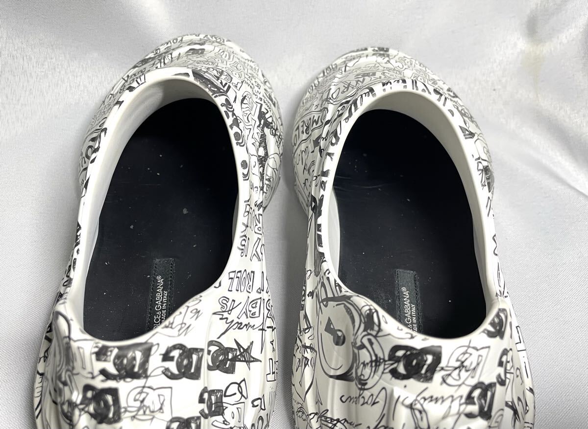 即決 DOLCE&GABBANAドルチェ&ガッバーナ グラフィティプリント スリッポン スニーカー 41 27cm 白&黒 ブラック&ホワイト ドルガバ DG