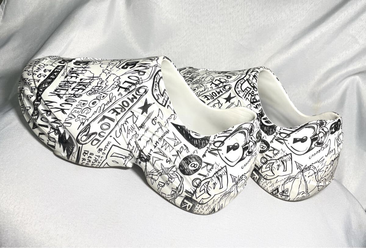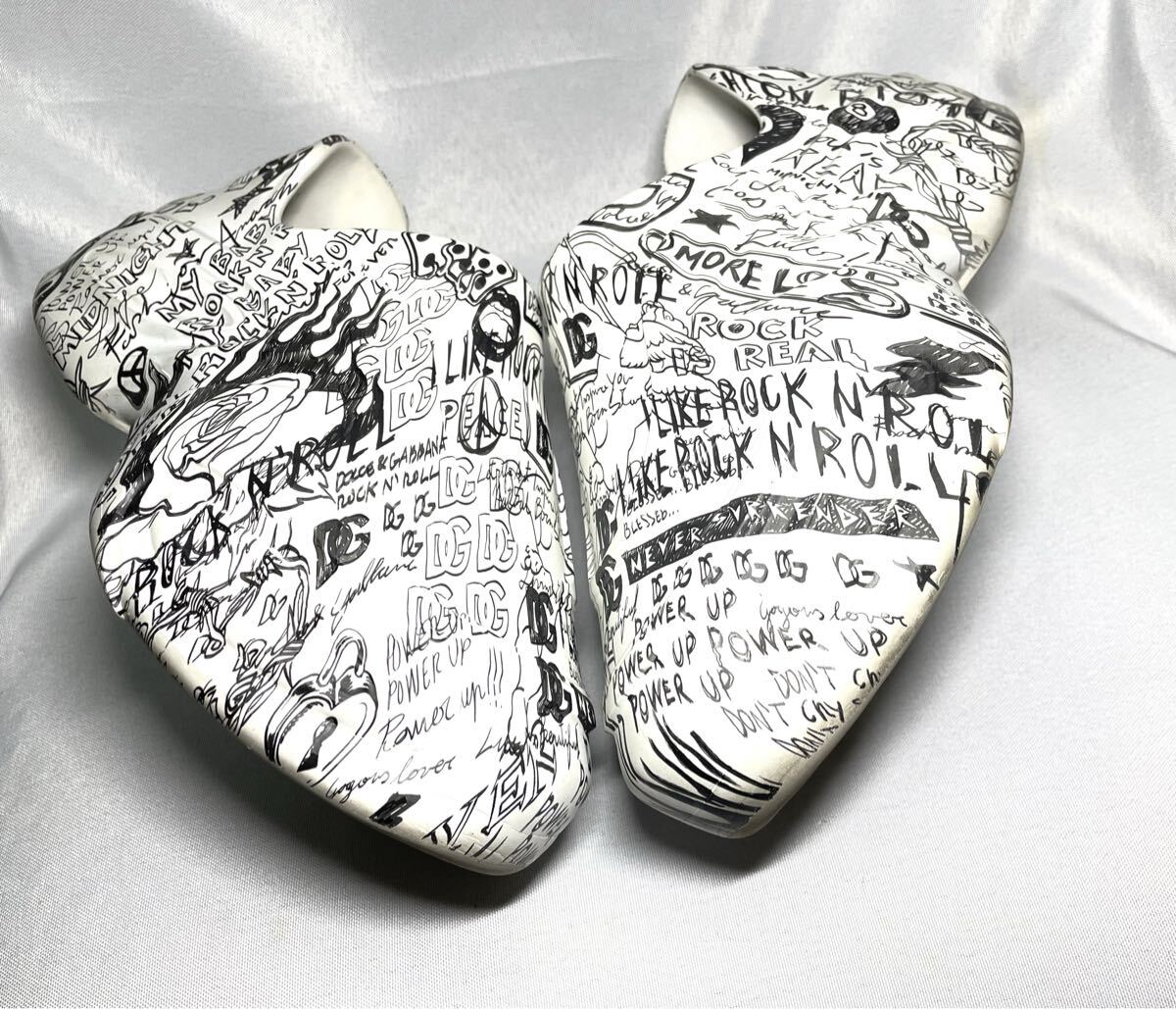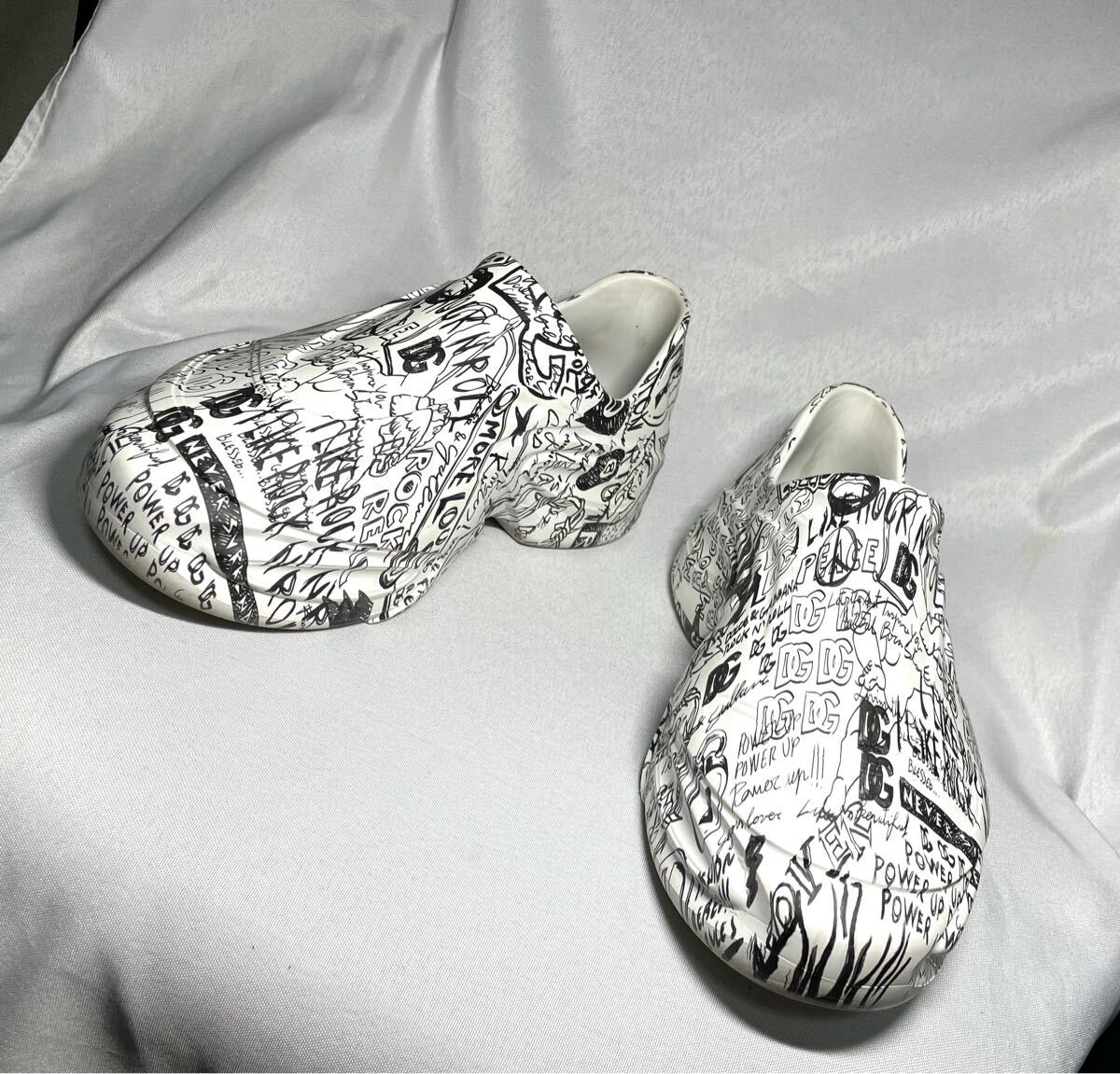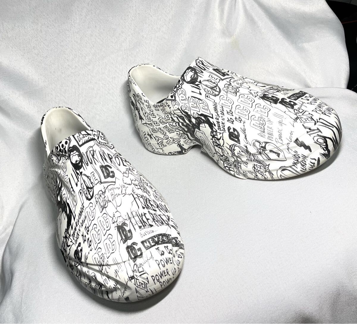 即決 DOLCE&GABBANAドルチェ&ガッバーナ グラフィティプリント スリッポン スニーカー 41 27cm 白&黒 ブラック&ホワイト ドルガバ DG