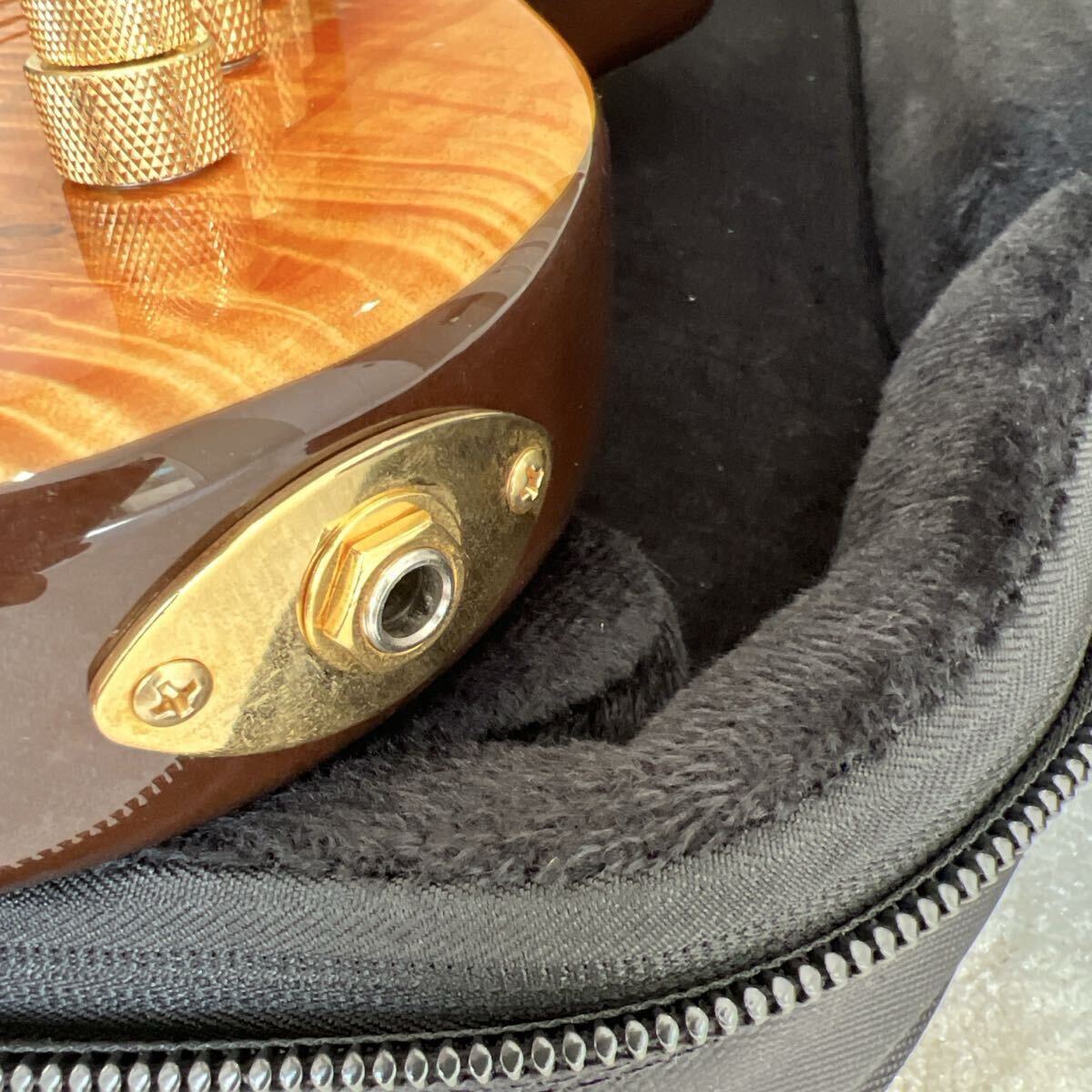 ネックは美しいMaple、柾目取りでネック中央綺麗に一直線のリボン杢が入っています。