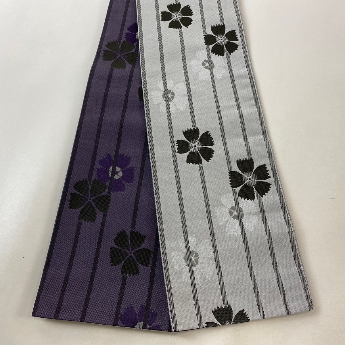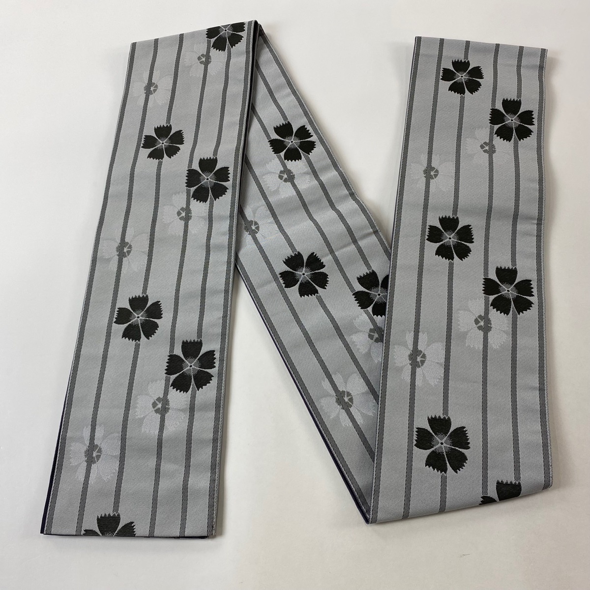 半幅帯 美品 優品 撫子 縞 灰色 化繊 【中古】 |