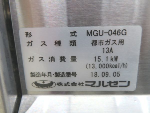 ◆マルゼン 2018年◆ガス式うどん釜 ゆで麺機 MGU-046G 都市ガス 450×600×800 サイズ:W450×D600×H800mm バック300mm ガス種:都市ガス 槽の水量:40L 製品質量:84kg 定 価:345,000 円(税抜) 出品にあたり動作確認・クリーニング済みです。 多少の傷・使用感等がありますので、予めご了承ください。 中古品ですので、画像をよくご確認の上、ご理解頂ける方のご入札をお願いいたします。 神経質な方はご入札をご遠慮ください。 気持ちの良いお取り引きにしたいと思いますので、ご不明な点等ございましたらお気軽にご質問ください。 | |