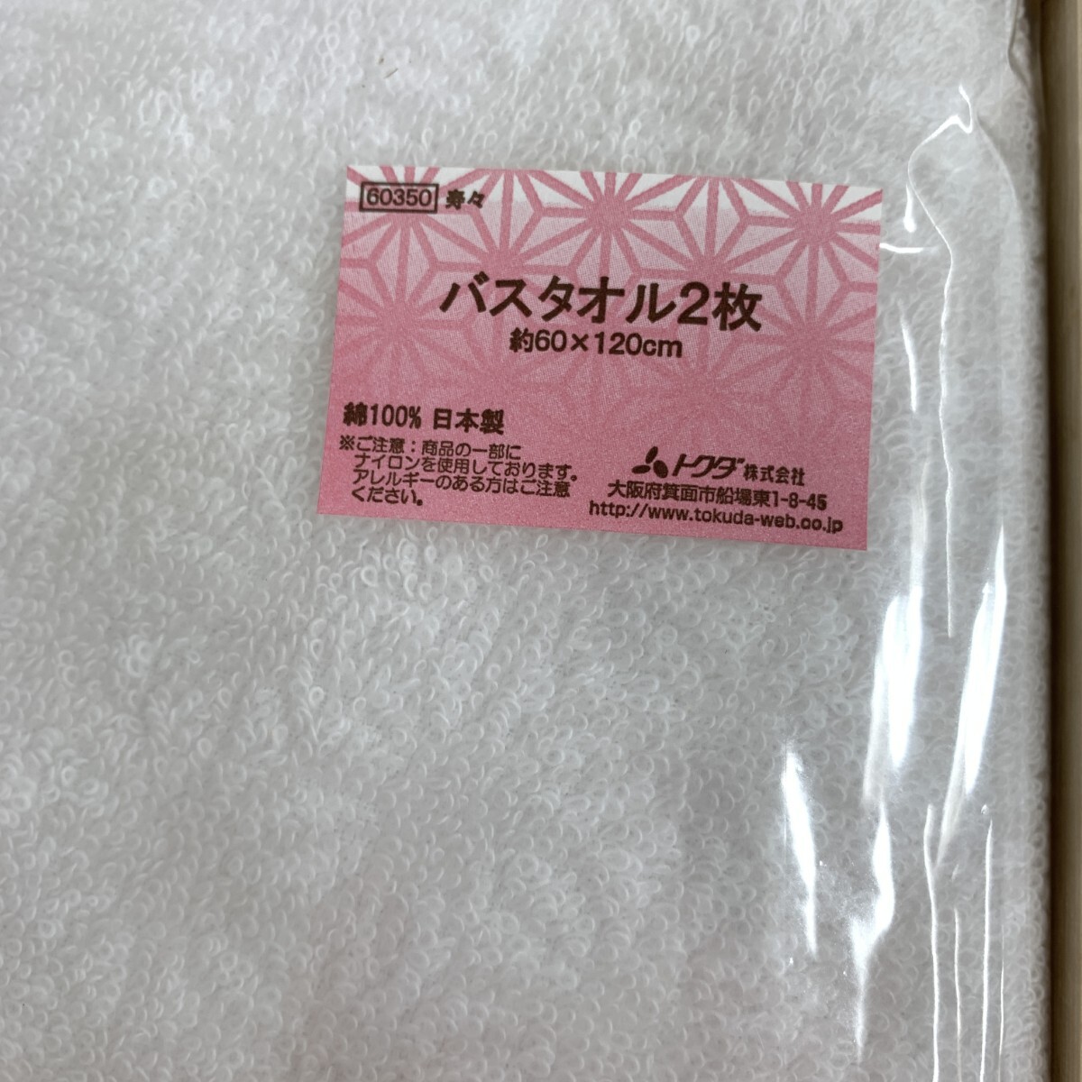 タオルセット/バス2 コットン/ピンク&ホワイト/木箱 |