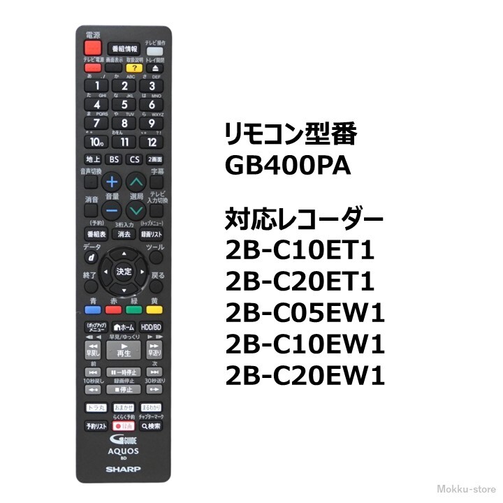 シャープ アクオス ブルーレイ 純正リモコン GB400PA SHARP AQUOS レコーダー リモコン 0046380290 2B-C10ET1 C20ET1 C05EW1 C10EW1 など