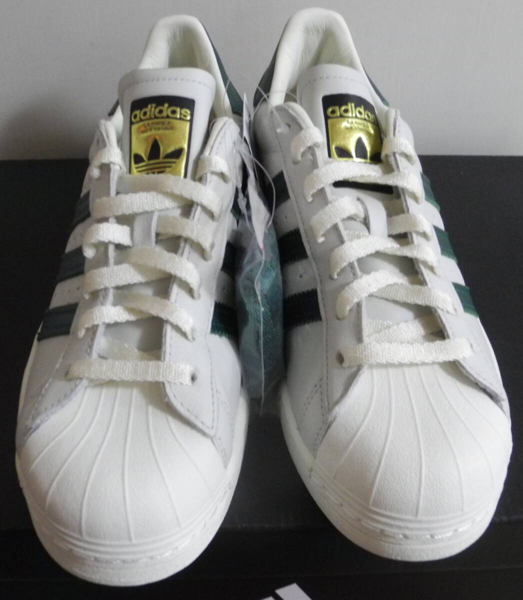ほぼ新品 スーパースター 2020年製 JP26.5cm H68186 白×緑 生産終了 天然皮革 adidas superstar 人気定番モデル ホワイト×グリーン 本革