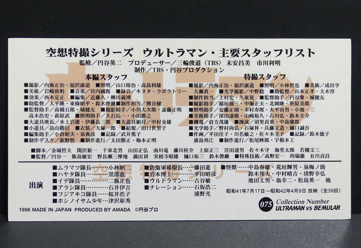 1996年 アマダワイドコレクション 空想特撮シリーズ 075 「ウルトラマン・主要スタッフリスト」■トレカ