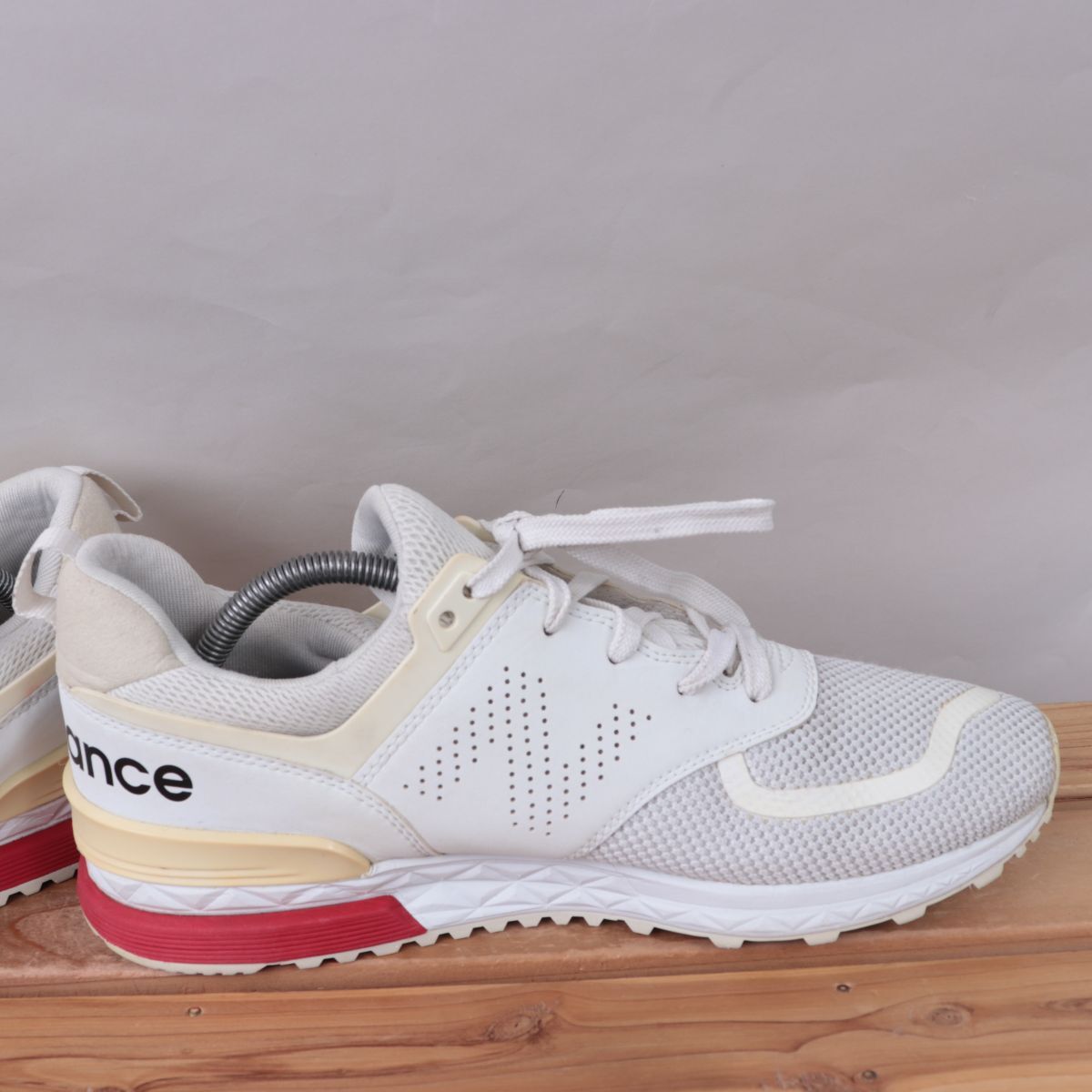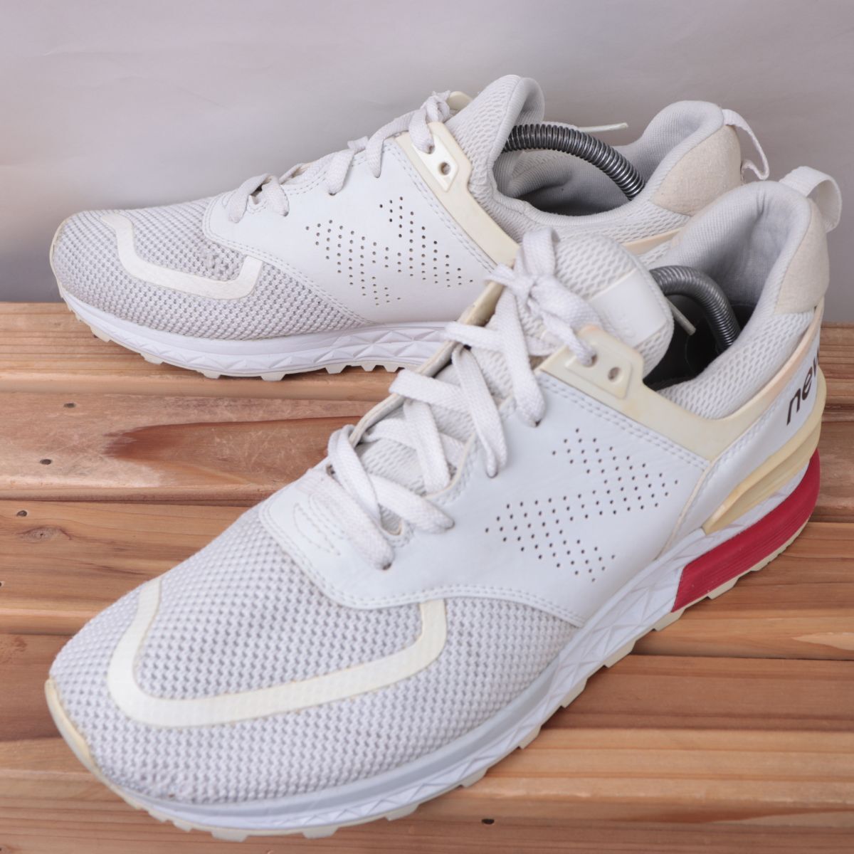 z1707【574】ニューバランス US10 28.0cm/白 ホワイト 赤 ライトベージュ newbalance メンズ スニーカー 中古