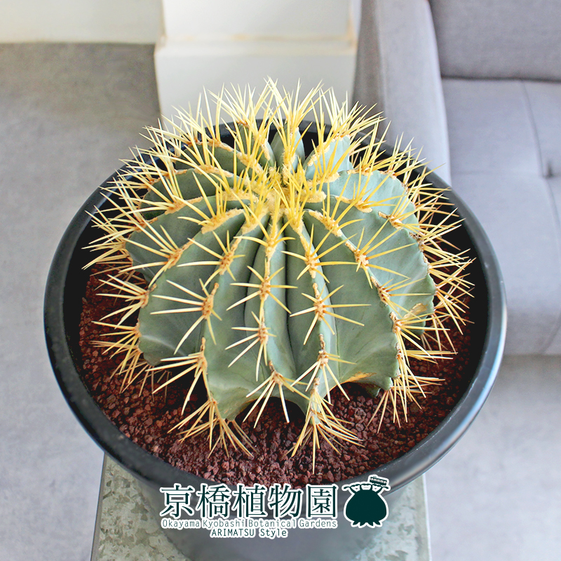 【現品】サボテン 王冠竜 8号 黒鉢(1)Ferocactus glaucescens