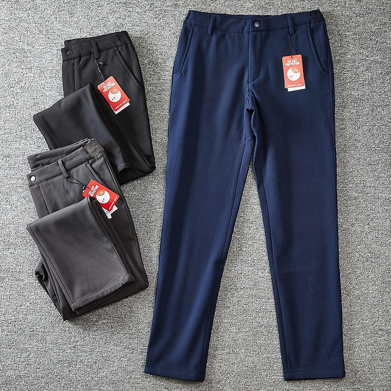 Y6400-L ネイビー 新品 イージーパンツ ウール混 UVカット 秋冬 撥水 厚手 防寒 防風 裏起毛 ノーアイロン メンズ ビジネス カジュアル