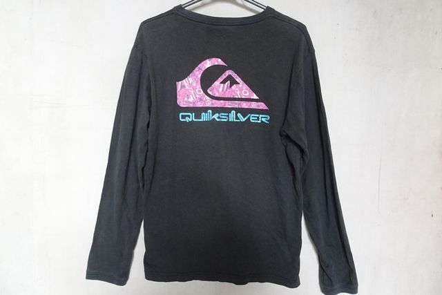 QUICK SILVER/クイックシルバー/長袖Tシャツ/ロンT/クルーネック/ロゴプリント/スポーツ/カジュアル/黒/ブラック/Lサイズ(9/5R7)