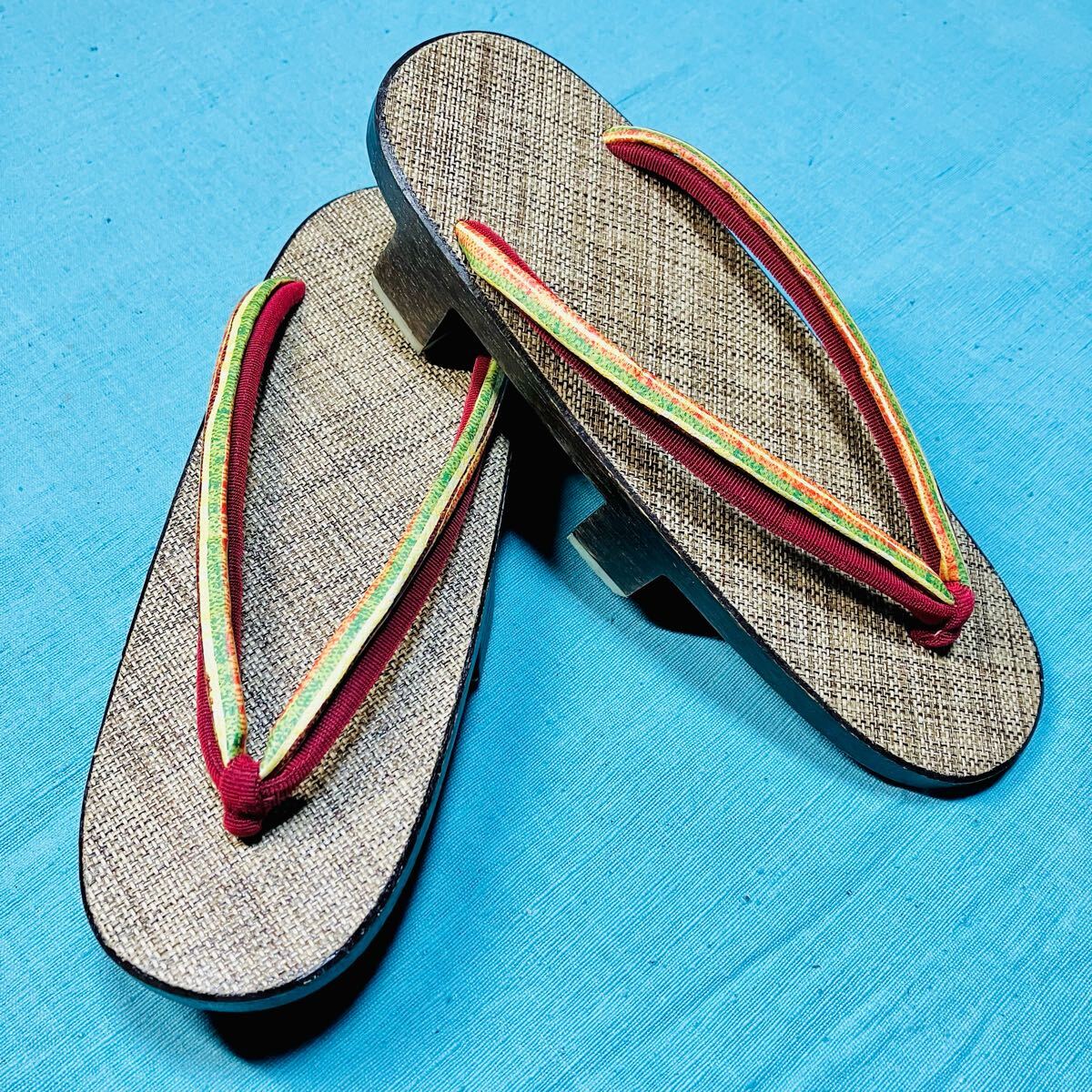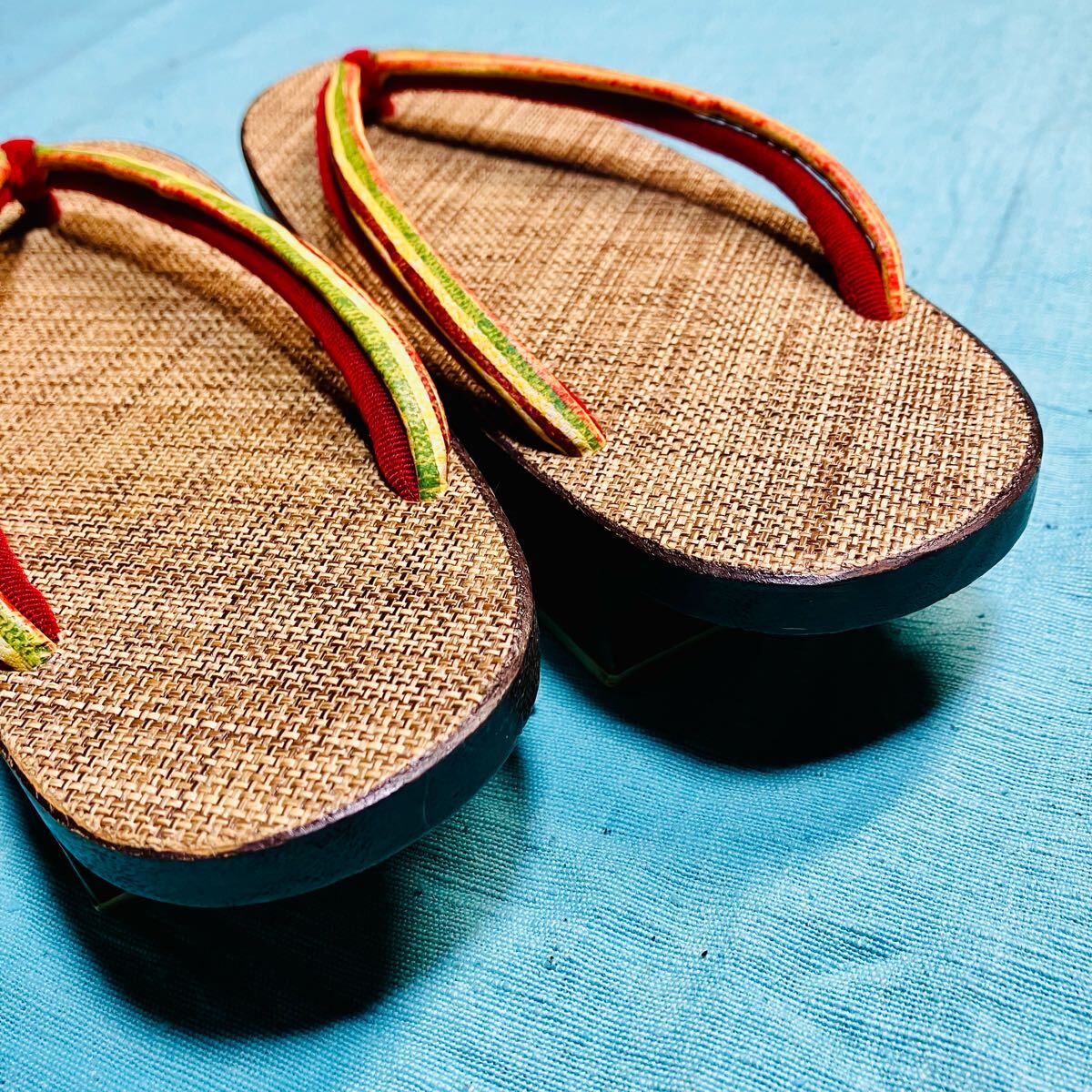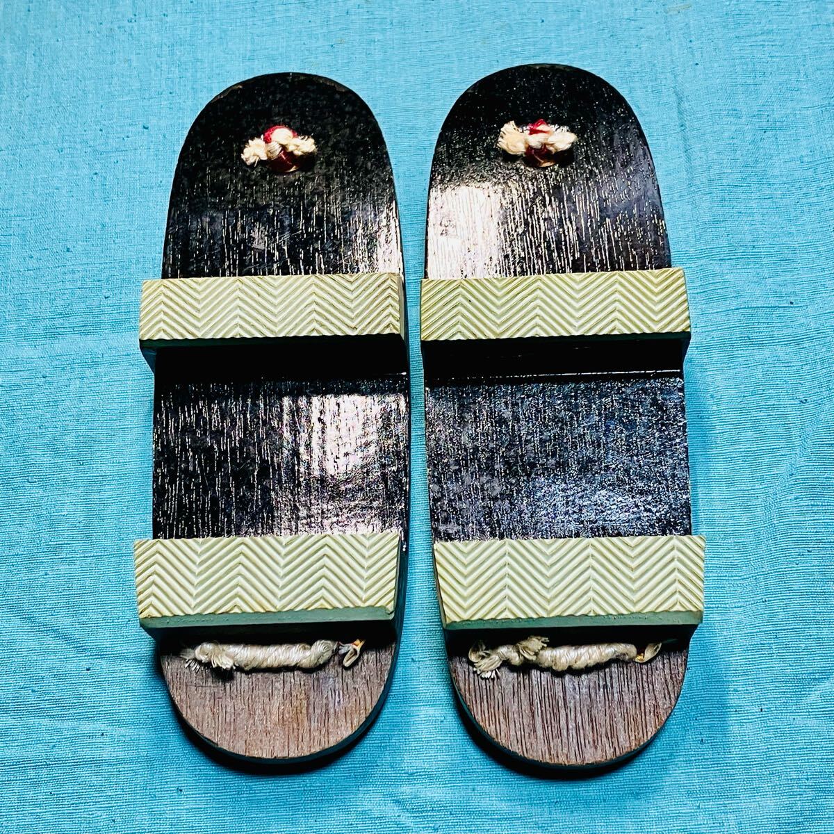 二枚歯にはゴムつき、高さも低めで履きやすそうです