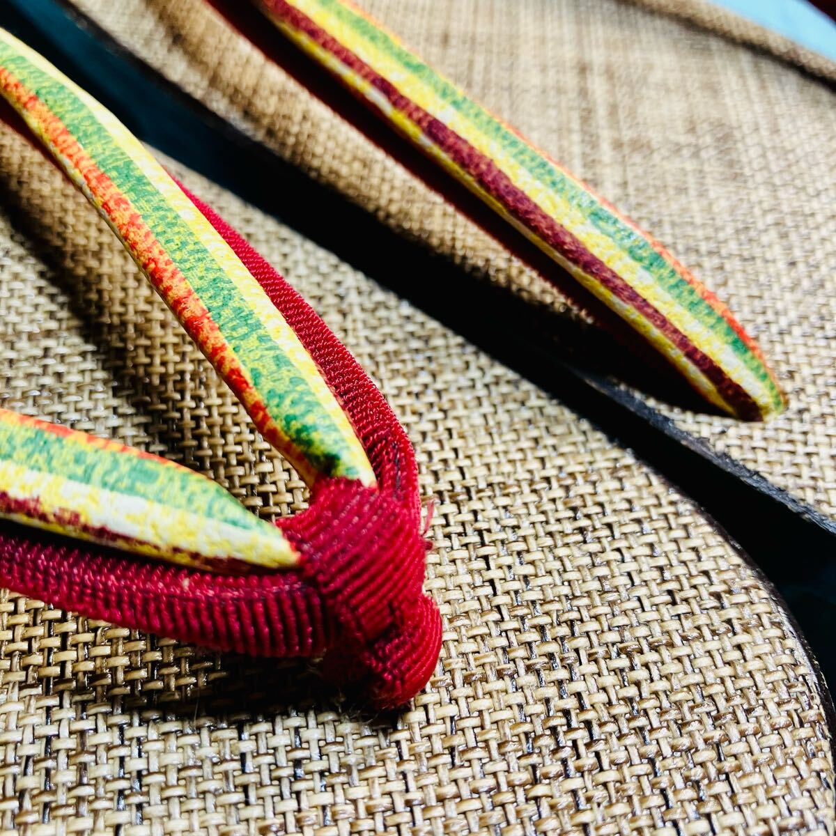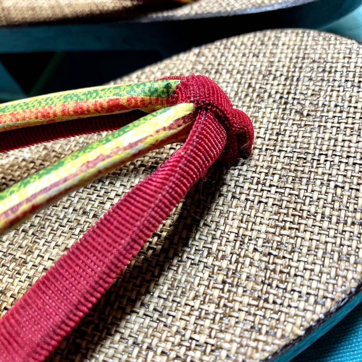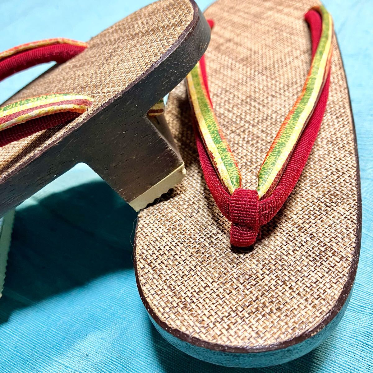 二枚歯にはゴムつき、高さも低めで履きやすそうです