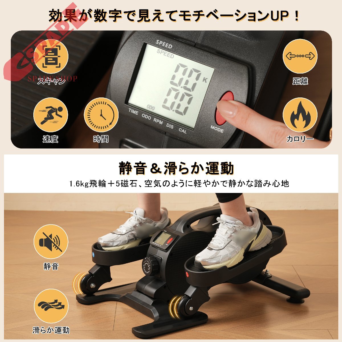 • 【多機能モニター搭載】電子ディスプレイで時間・速度・距離・回数・カロリー・合計走行距離などをリアルタイム表示。毎日の運動成果を見える化し、モチベーションもアップ。