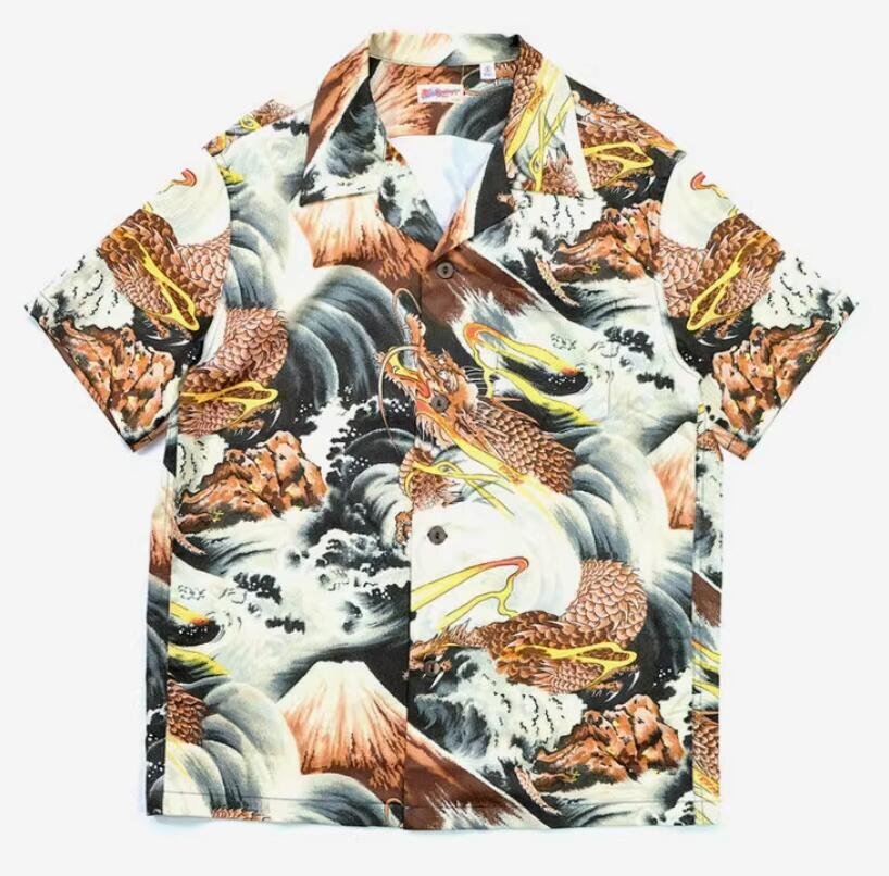 SUN SURF サンサーフ 半袖アロハシャツ Sサイズ ベージュ RAYON S/S DRAGON & Mt FUJI