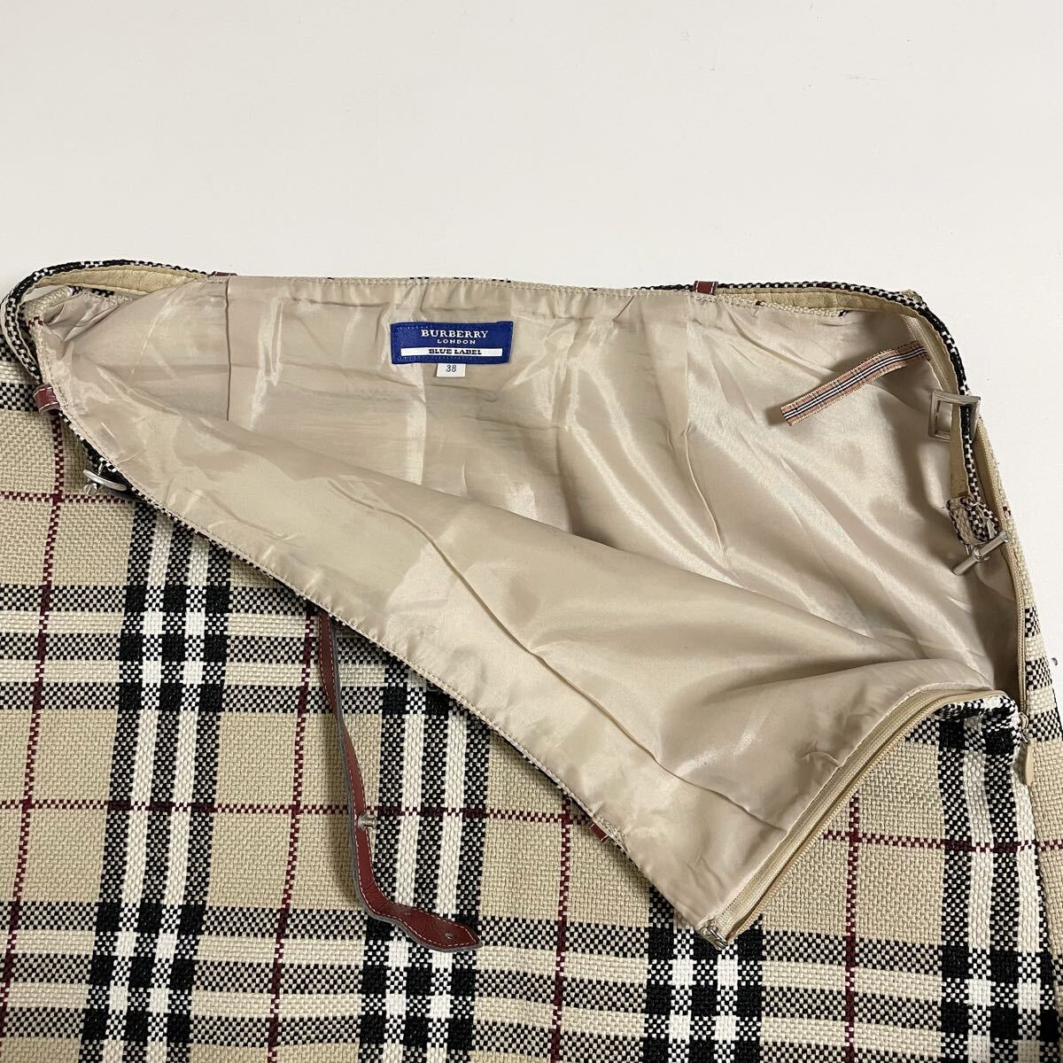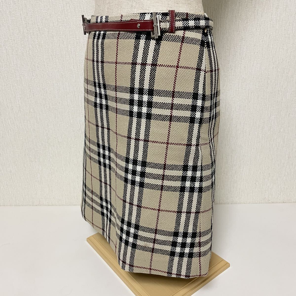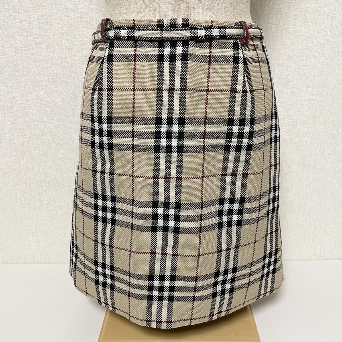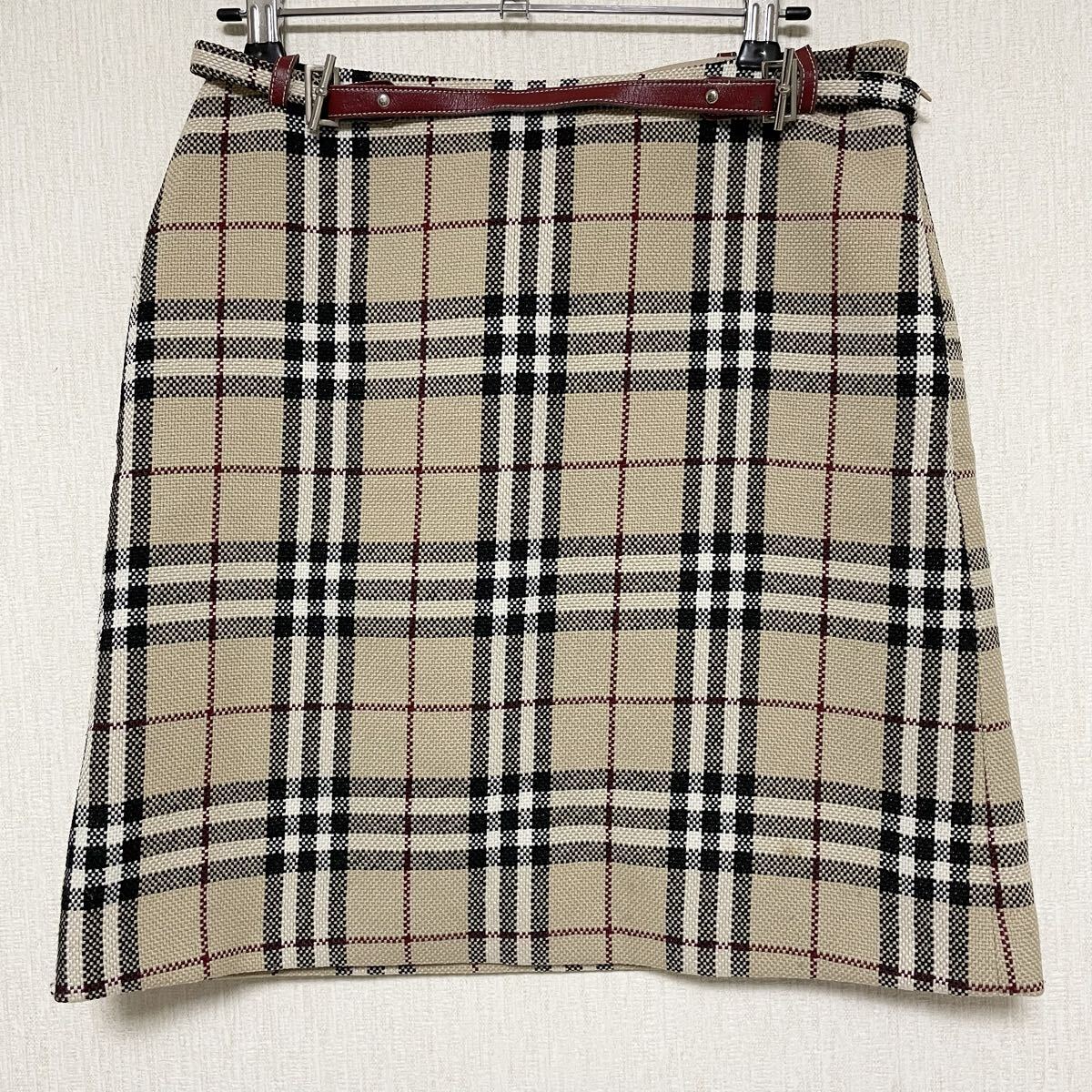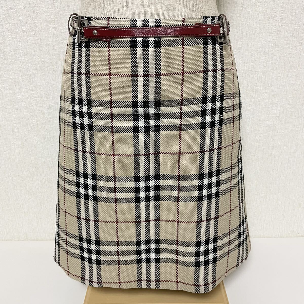 即決☆BURBERRY バーバリー ブルーレーベル ウール混 ノバチェック スカート ベルト付き 38 M