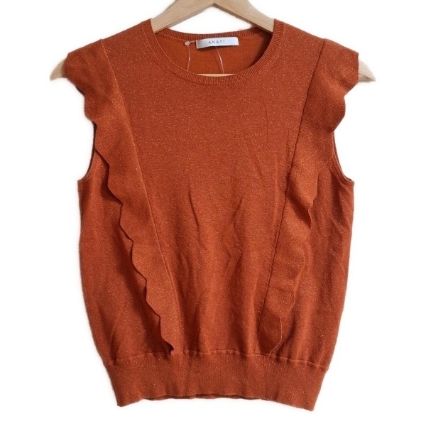 アナイ ANAYI ノースリーブセーター/ニット サイズ38 M - ブラウン レディース クルーネック/ラメ/フリル トップス