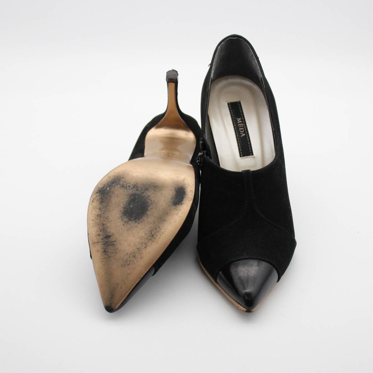 スッと伸びたヒールとポインテッドトゥが足元を美しく演出してくれるMedaのブーティ。