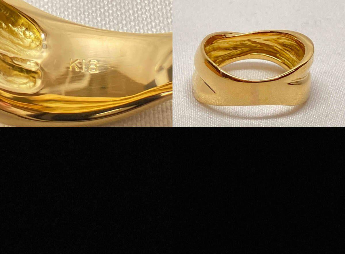 画像のものがすべてです。 素材:K18 品名:リング リングサイズ:約13.5号 リング幅:約0.47〜0.9mm 総重量:約9.1g リングサイズは変更できかねますのでご了承ください。 ※サイズはスタッフが手作業だ計測しており、誤差が生じることがございます。予めご了承ください。 ※当店の殆どの商品は中古のお品物でございます。その為、中古品の時点で小傷はあるものとご理解の上お買い求めください。 | ||||||