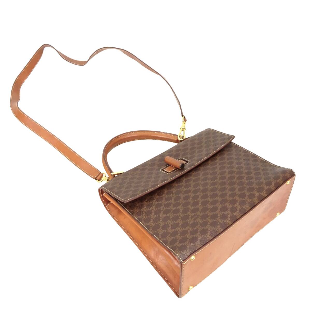 本物■セリーヌ■マカダム 2WAY ブラウン PVCキャンバス ゴールド 斜めがけショルダーバッグ ハンドバッグ