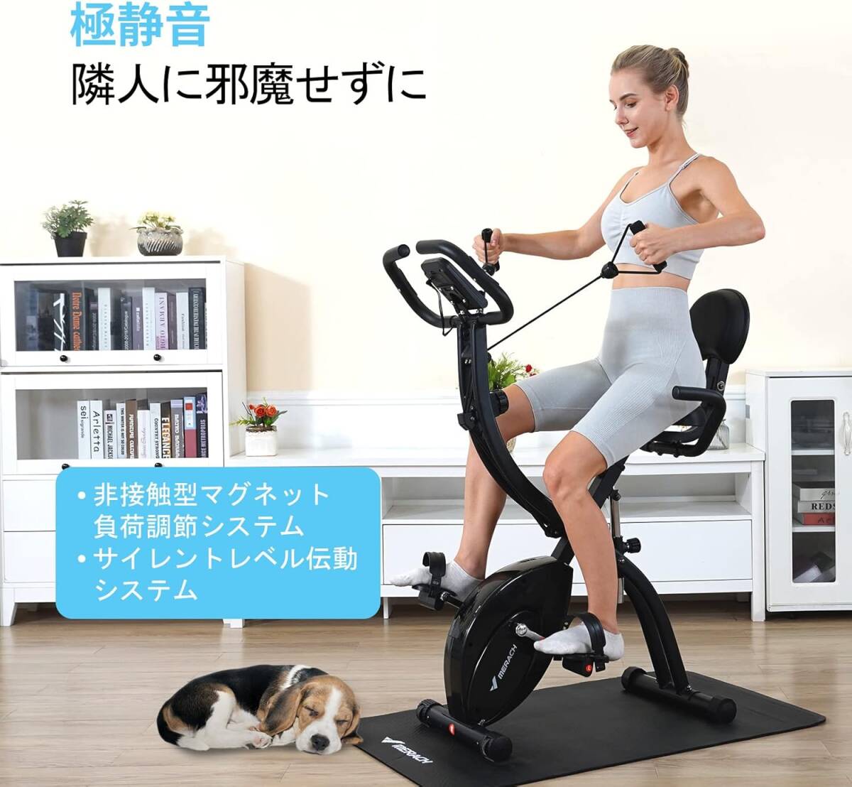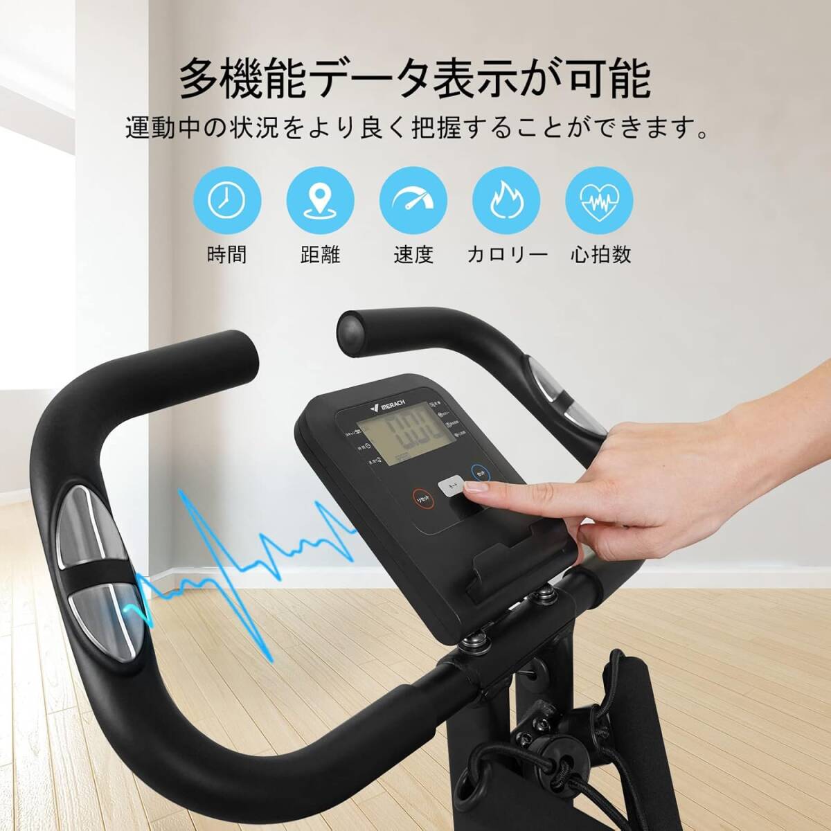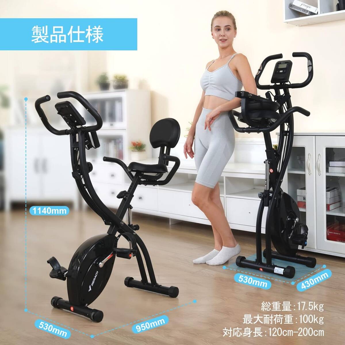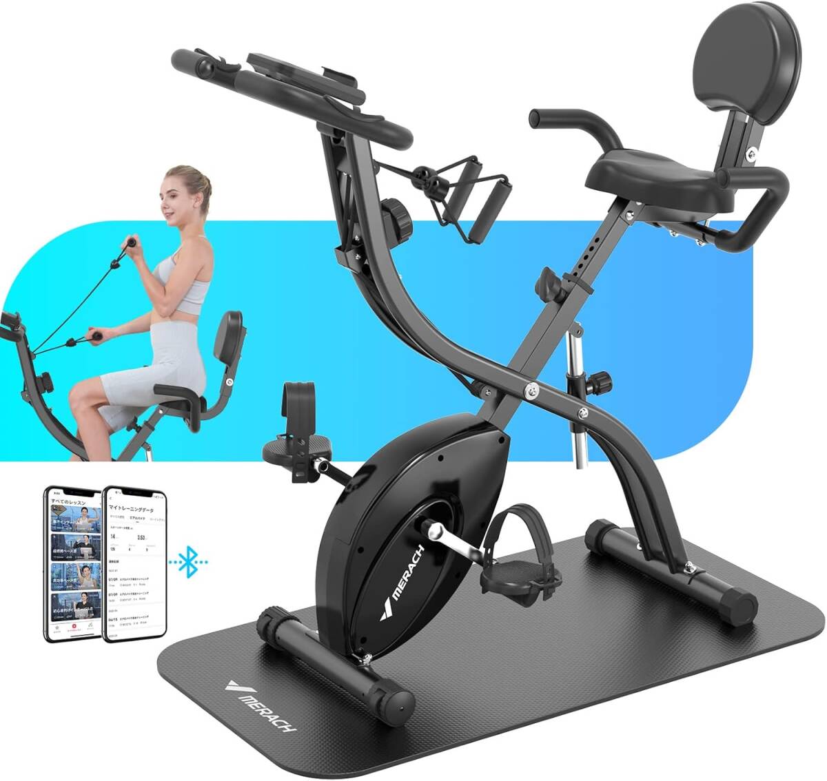 MERACH フィットネスバイク エアロバイク 心拍数計測 アプリ連動 16段階負荷調節 マグネット式 家庭用 静音 折りたたみ 背もたれ