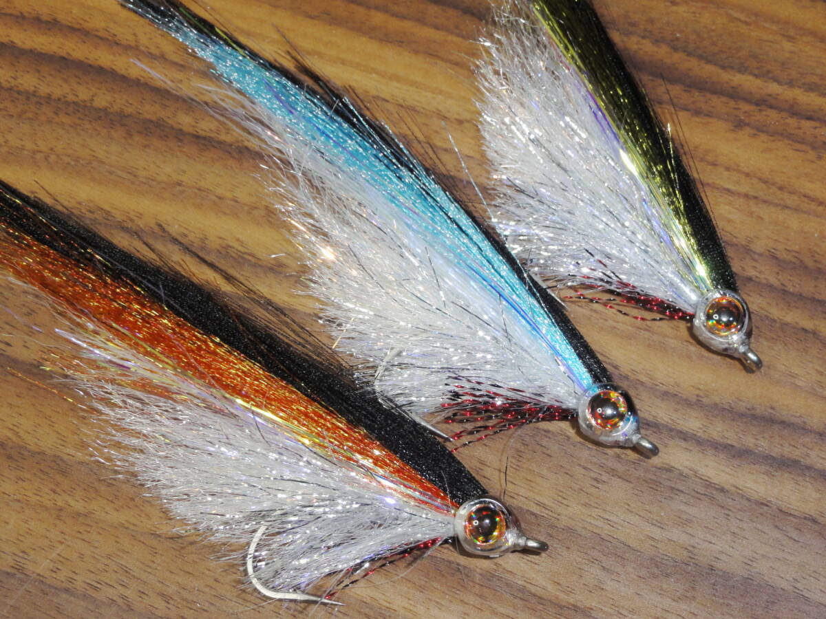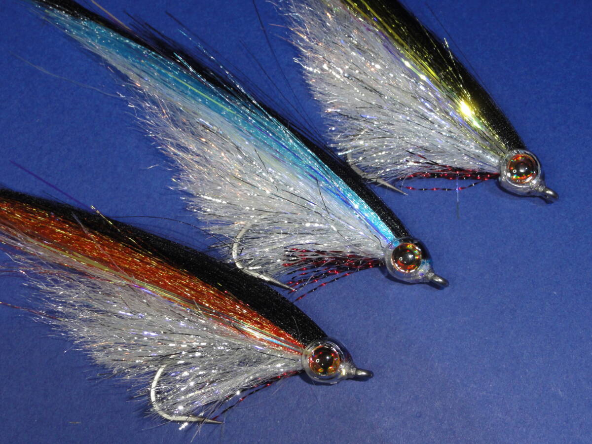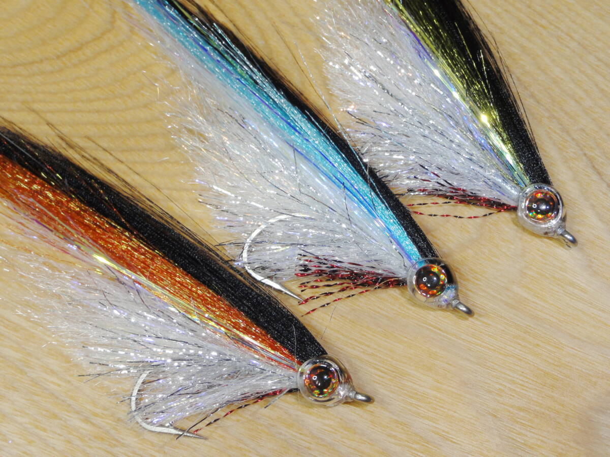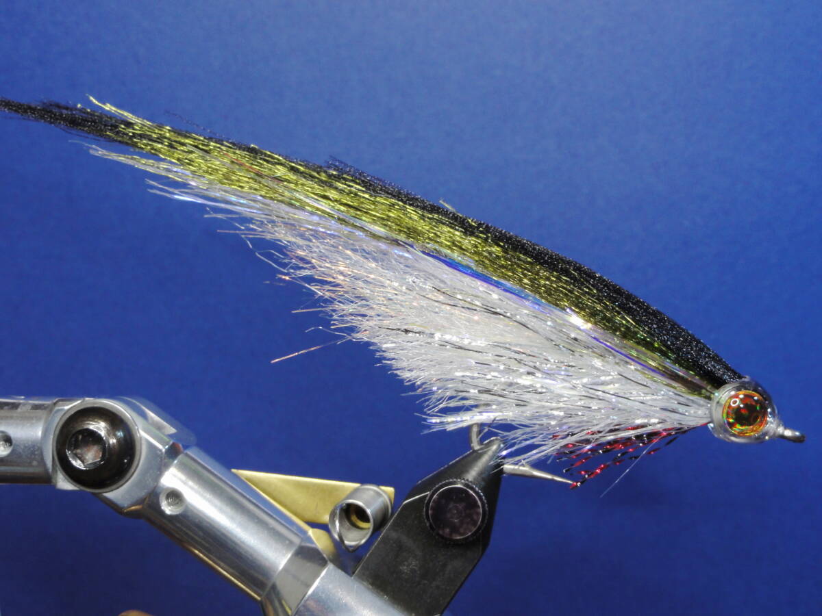 | ご覧頂きありがとうございます。 ヘッドにフィッシュマスクを使用した大型ミノーです。 プラスチック製のクリアヘッドなので軽く扱いやすいフライです。 ボディにはヘアーライン社のUVポーラーシェニール、ウイングにはフロロファイバーとDNAホロフュージョンを使用しました。 フロロファイバーは光沢のある極細繊維でできており、水中で光を良く反射します。 使用マテリアル フック:マルト SS1930 #3/0(国産ステンレスフック 42×17ミリ) ヘッド:フィッシュマスク ボディー:UVポーラーシェニール ウイング:DNAホロフュージョン、フロロファイバー テイル:ストリーマーフラッシュファイバー 全長:12センチ 重量:2g ウイングカラー:オリーブ×ブラック、スカイブルー×ブラック、 ダルレッド×ブラック 対象魚:シーバス、カツオ、サバ、マグロ、イナダ他 | ||
