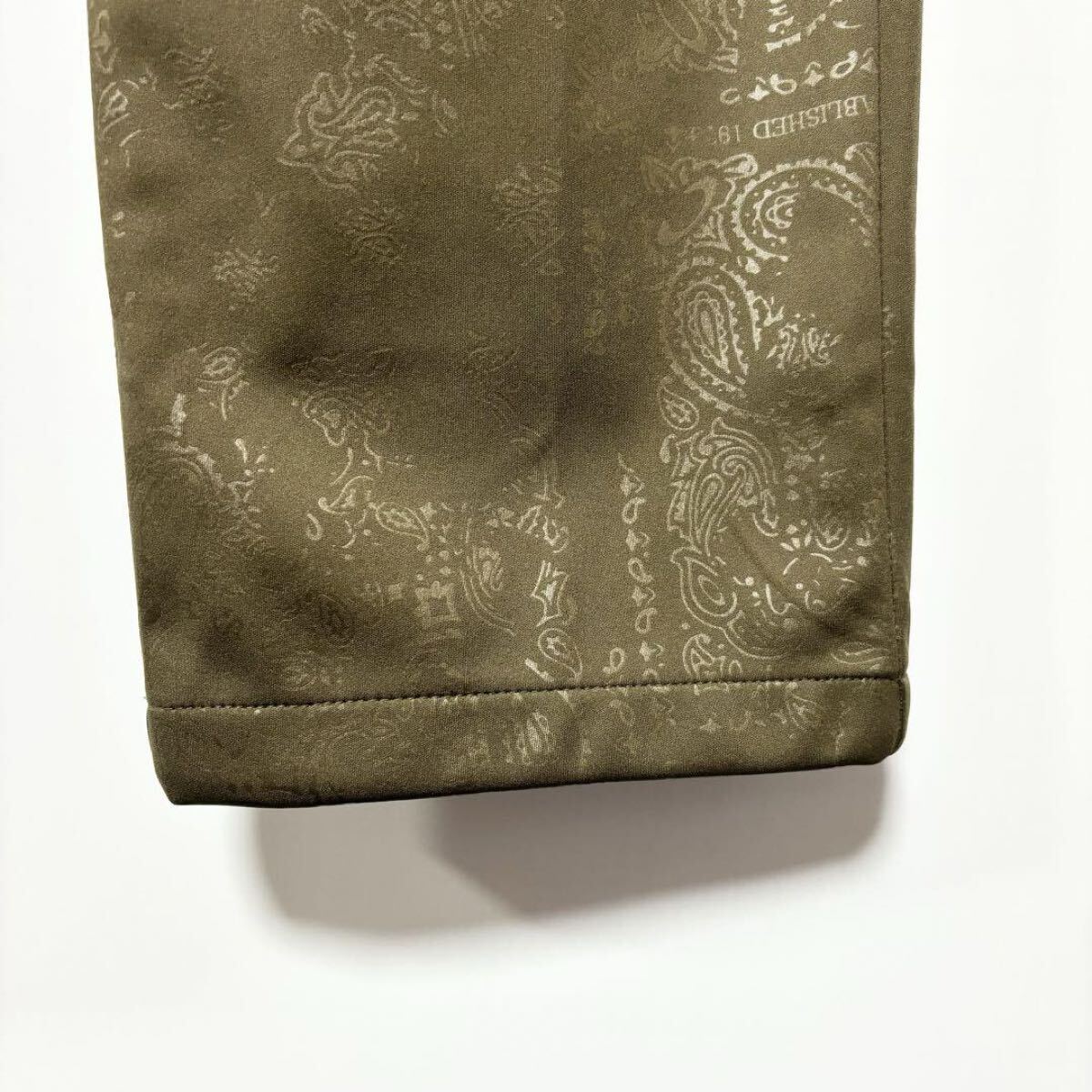 表側にはペイズリー柄をエンボスする事で価値観を演出し、右腿には利便性の高いファスナーポケットを配置。