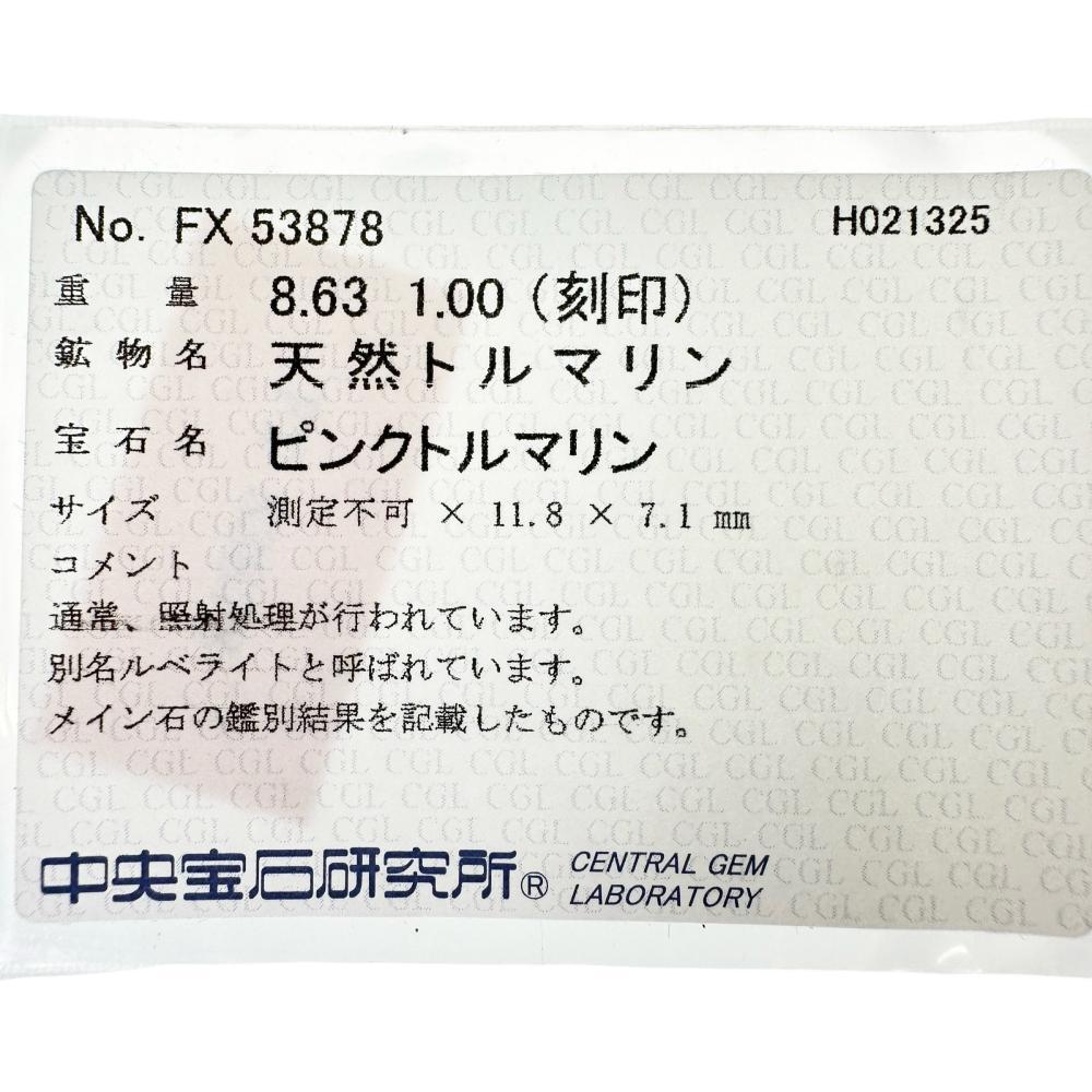 | ★石 | ルベライトトルマリン:8.63ct ダイヤモンド:1.00ct |