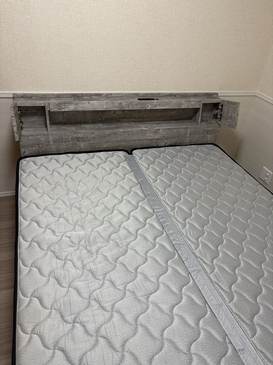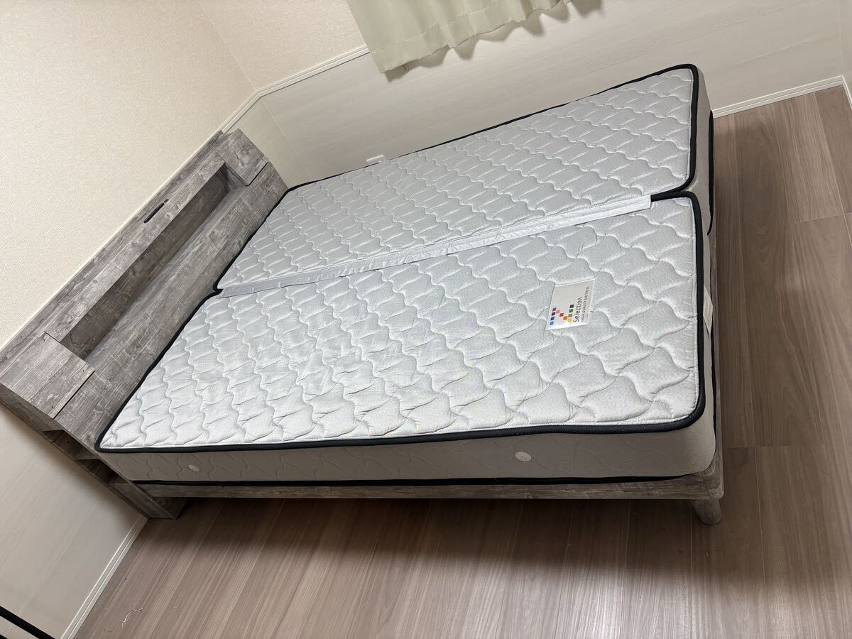 大川全家具 クイーンベッド ベッドフレーム&ベッドマット セット フレームサイズ横幅1610x縦幅2130 中古品 福岡県大川市 ㊥U00269