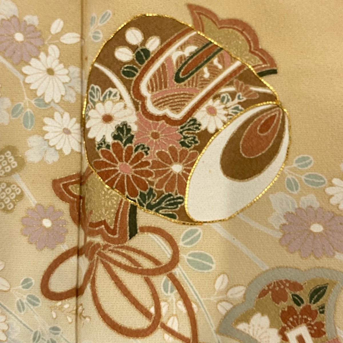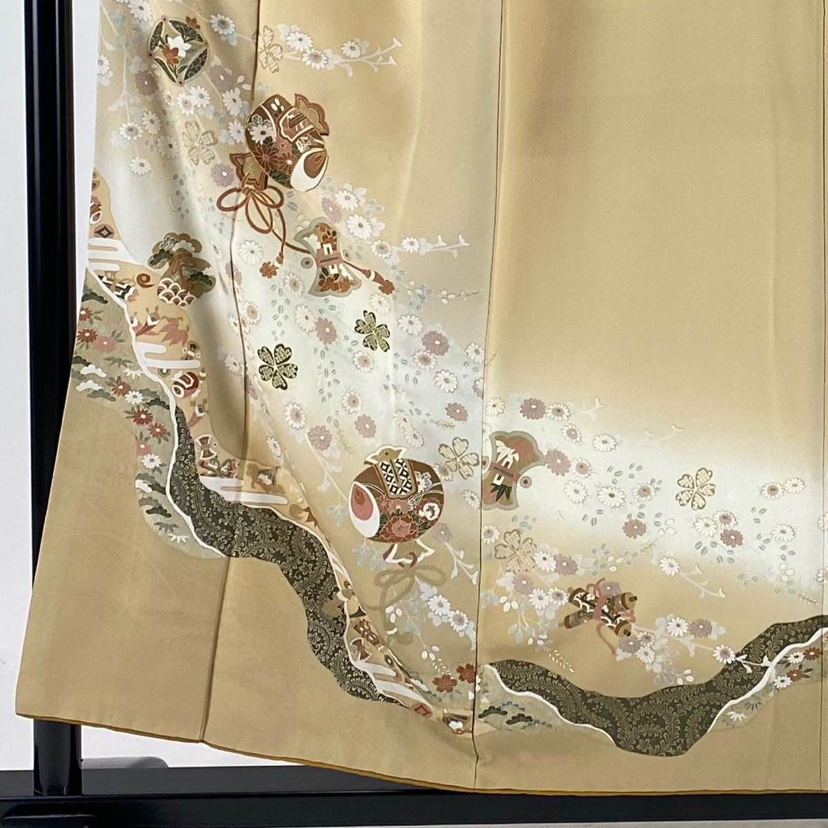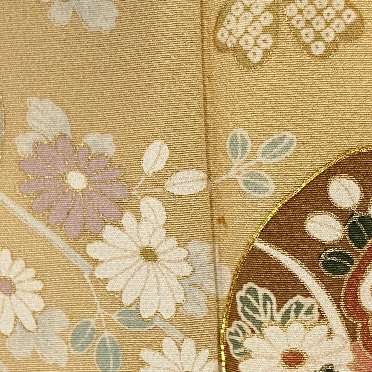 | 訪問着 秀品 宝尽くし 菊 金糸 金彩 薄オレンジ 袷 身丈156 裄丈69 L 正絹 【中古】 |