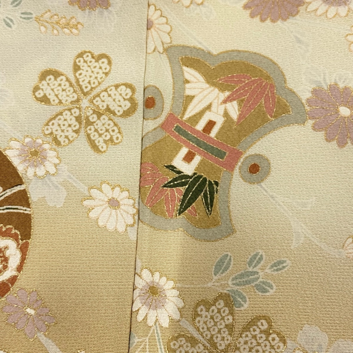 | 気品たっぷりにお召し頂ける素敵な訪問着です。 上品な華やぎを求められるパーティーや、品格が求められるお席などにお使い頂けます。 ※身丈・裄丈の縫込みの長さは測っておりません。 右胸と右衿にシミ、上前所々に小さなシミ、右袖前後と左前袖に点シミ、衿周りや両袖口中に汚れ、表地所々にシワ、表地所々に金彩の変色がございます。 八掛に薄いシミ、胴裏にホックシミがございます。 また、上前から後身頃にかけて柄のズレがございます。 リユース品としては良い状態で、まだまだご活用頂けると思われます。 ※なお、厳しく商品の状態確認を行っておりますが、記載の汚れ以外にも見落とし箇所がある可能性がある旨ご了承いただけますと幸いです。 沢山の商品の中からご覧いただき誠にありがとうございます。 |