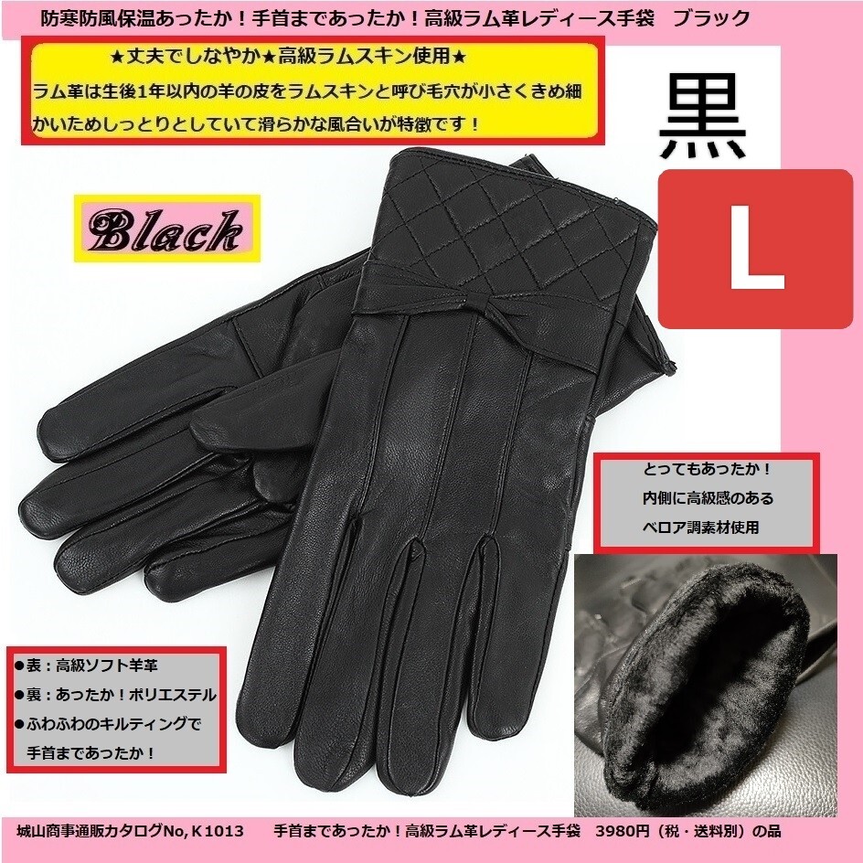 即決価格【消費税 送料すべて込み】訳あり 現品限り【本日限定値下げ】4978→1650【新品】高級ラム革 レディース手袋 黒 ブラック Lサイズ