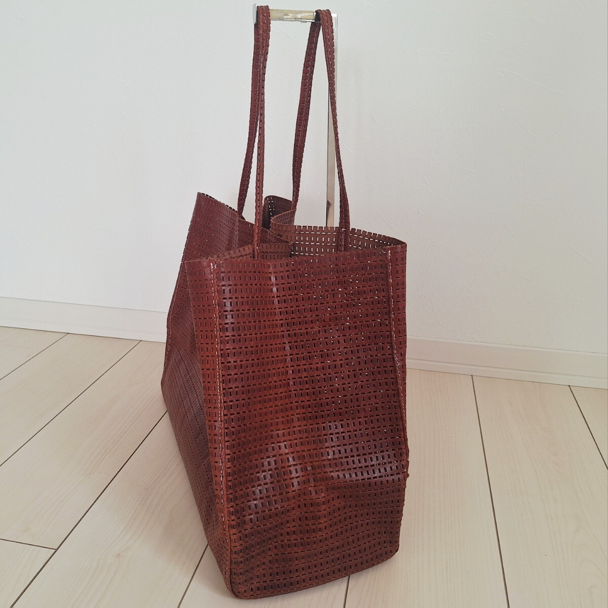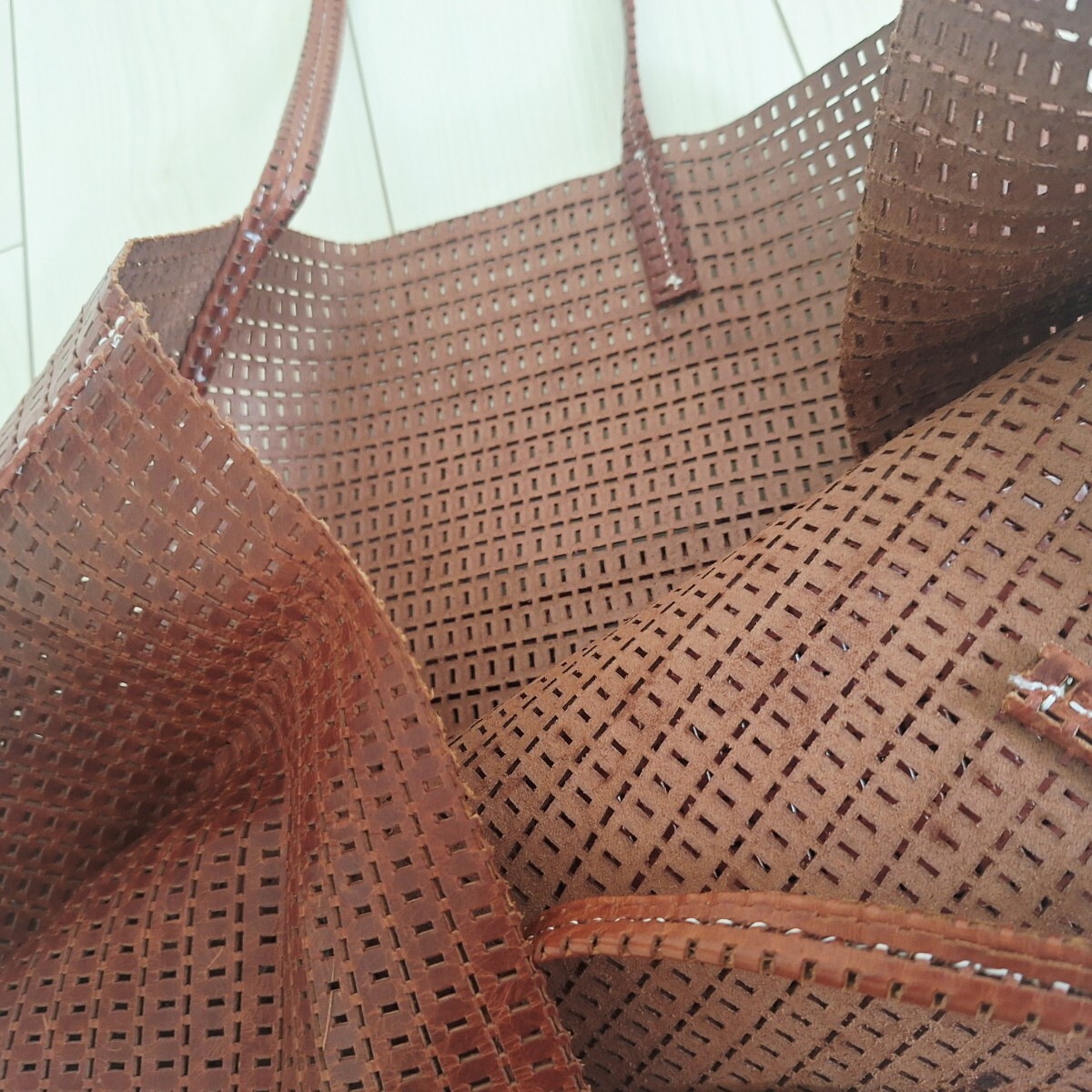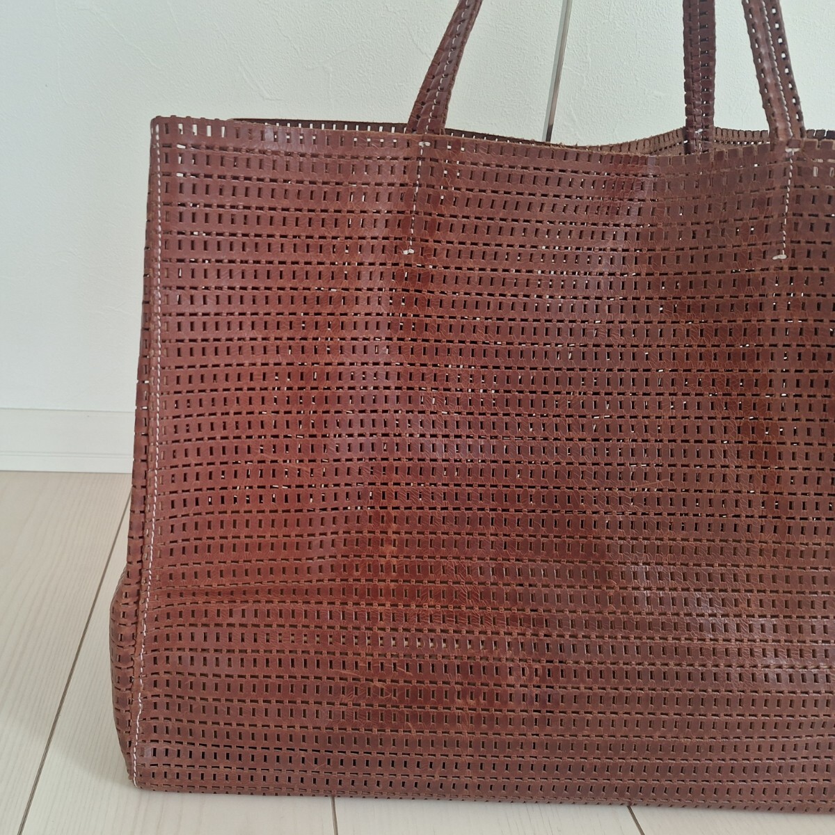 レザーのメッシュトートバッグです。