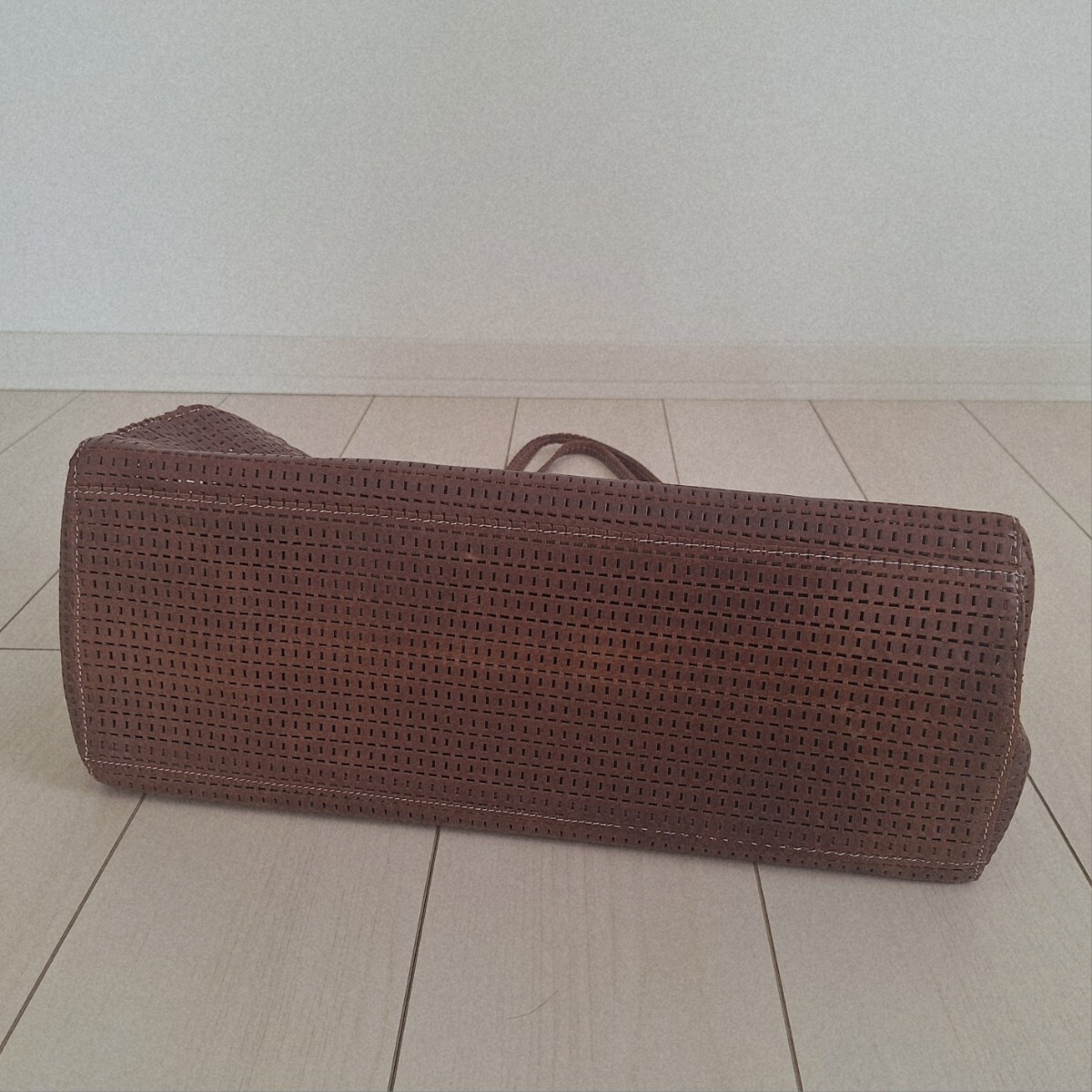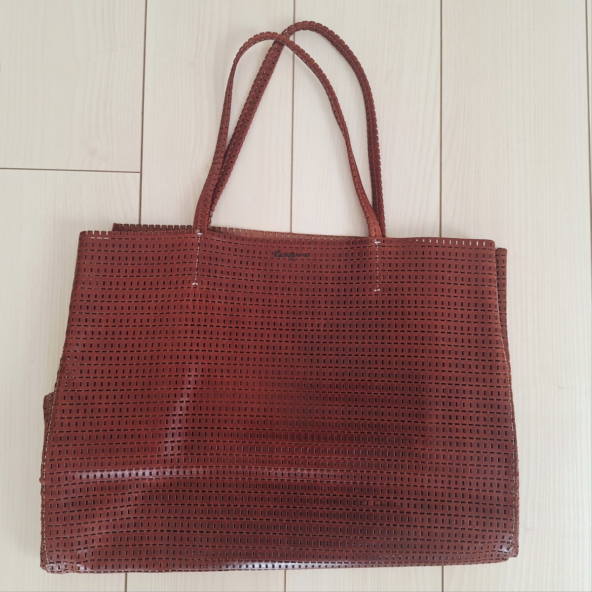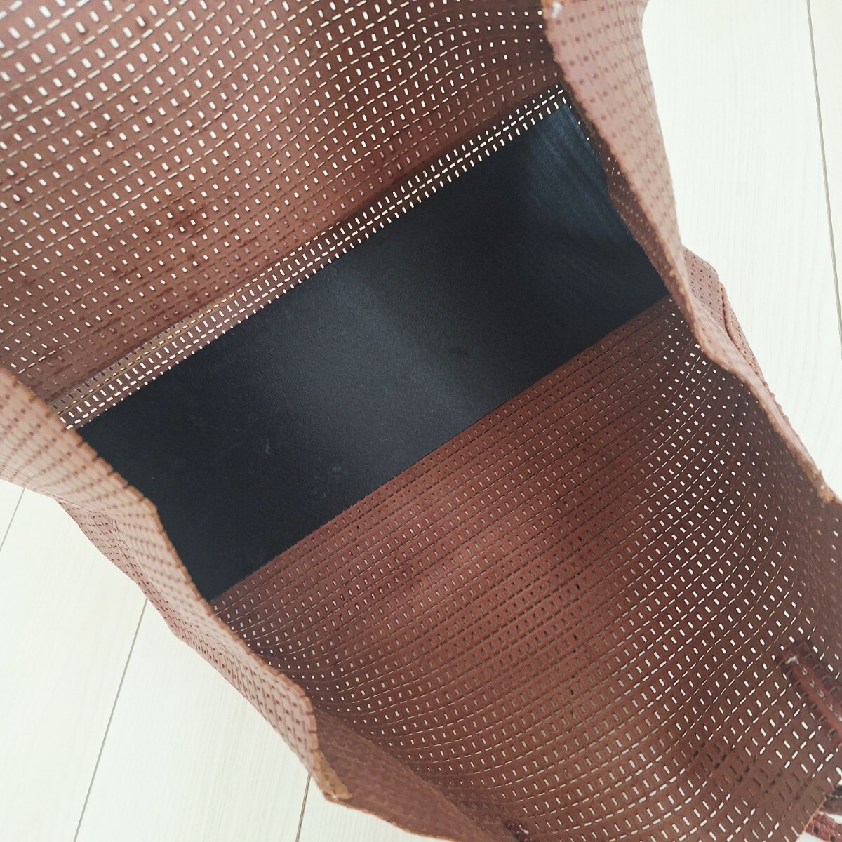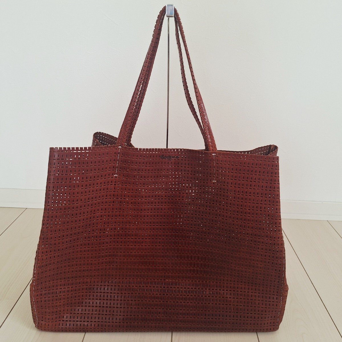 レザーのメッシュトートバッグです。
