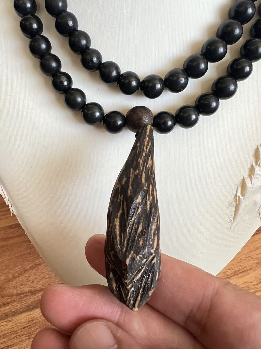 - デザイン: 二重構造、先端に伽羅香木で彫刻さ れたペンダント