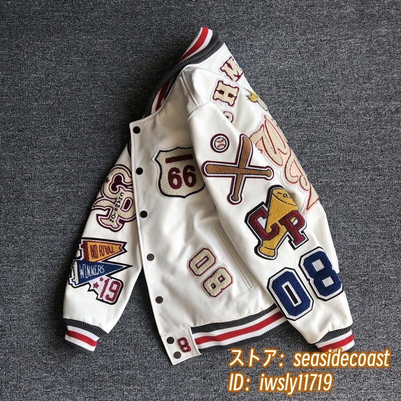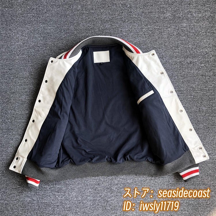 定価17万超★最上級 メンズ レザージャケット 皮ジャン パーカー 本革 スタジアムジャンパー 超希少 牛革 折り襟 バイクウェア 最豪華 L