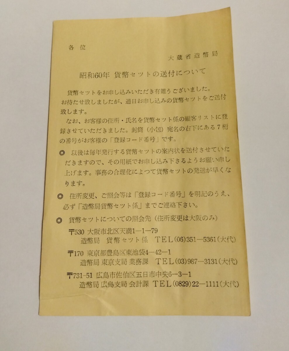 昭和60年貨幣セットになります。