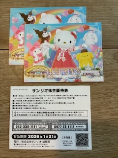 サンリオピューロランド株主優待券3枚のセットになります。(写真のもの)