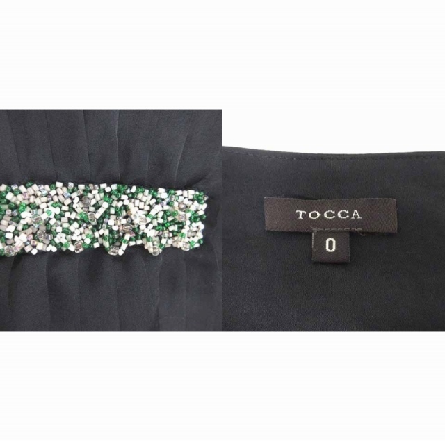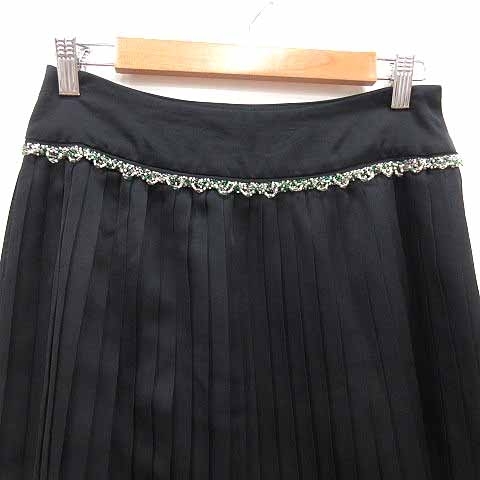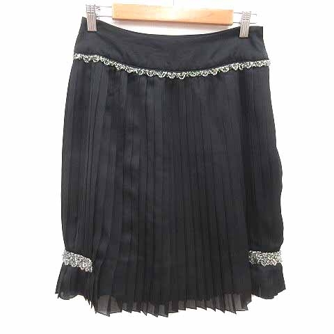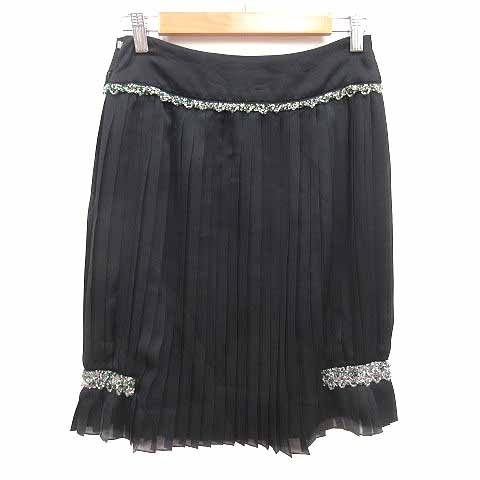 トッカ TOCCA プリーツスカート ひざ丈 ビーズ 0 XS 黒 ブラック /YK レディース