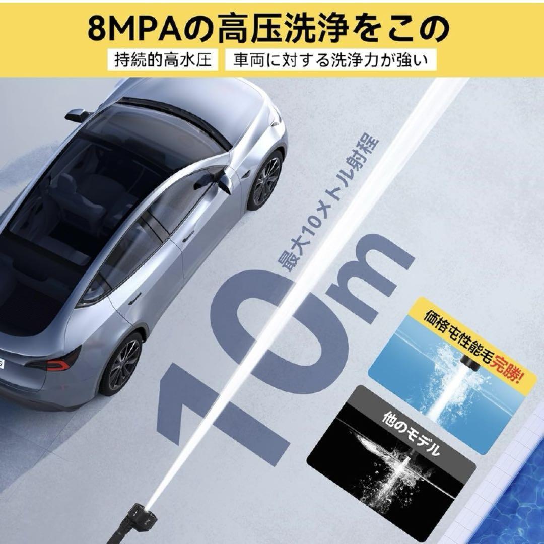 ② 強力水圧10M&6in1ノズルで多用途対応 直噴・拡散・ミストなど、ワンタッチ切替可能な6種モードノズル搭載。車の下回り、窓のサッシ、外壁、ブロック塀の頑固な汚れも徹底洗浄。