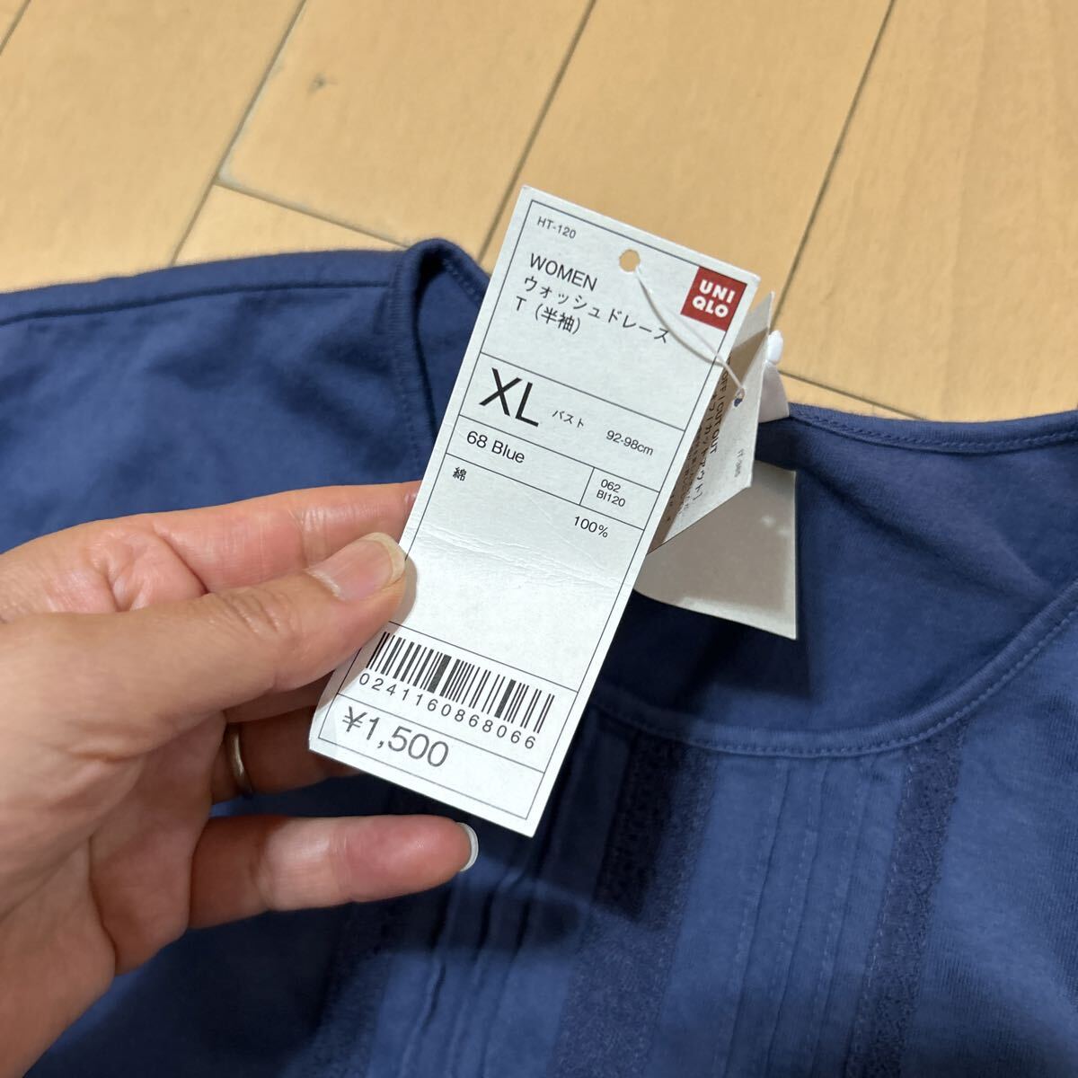 新品未使用ユニクロUNIQLOウォッシュドレースT XLブルー