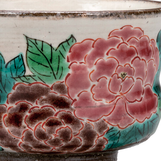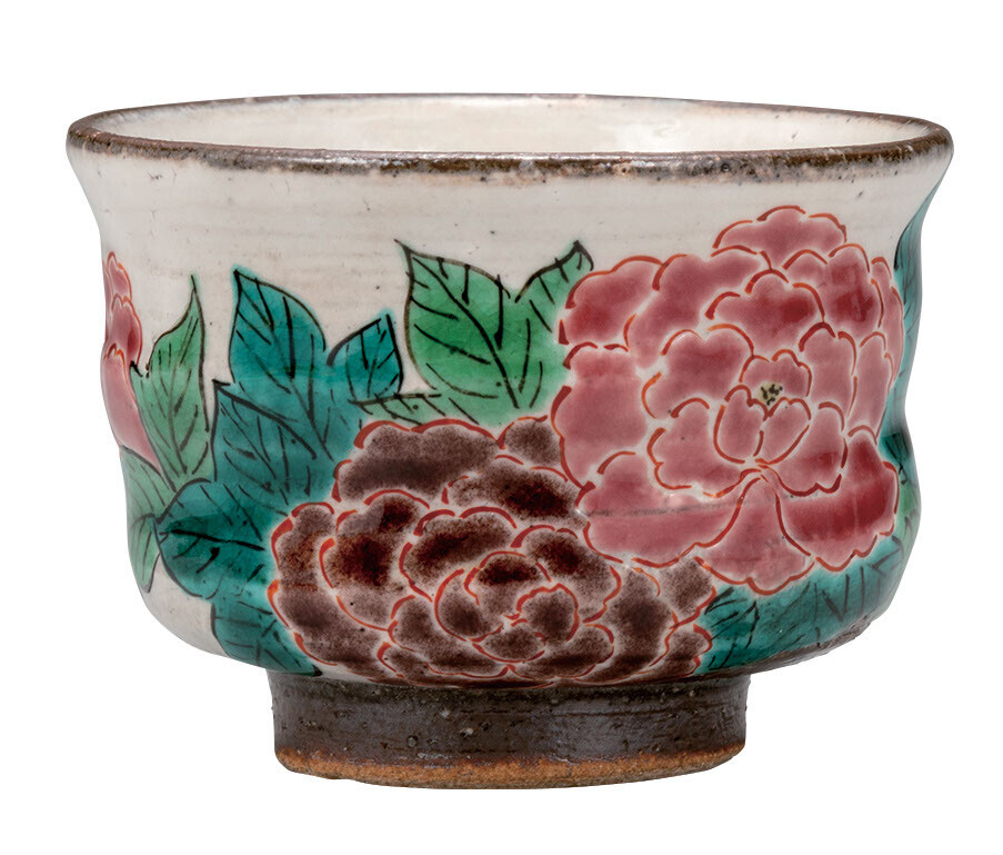 九谷焼!  田中柚枝 ☆ぼたん・ぐい呑☆ K9-1206 新品 酒盃 サカズキ 杯 盃 お猪口 馬上杯 ギフト