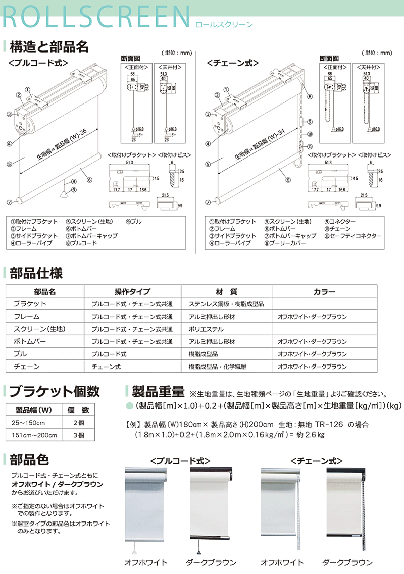 | ロールスクリーン標準タイプ | ||||||||||||||||||||||||||||||||||||||||||||||||||||||||||||||||||||||||||||||||||||||||