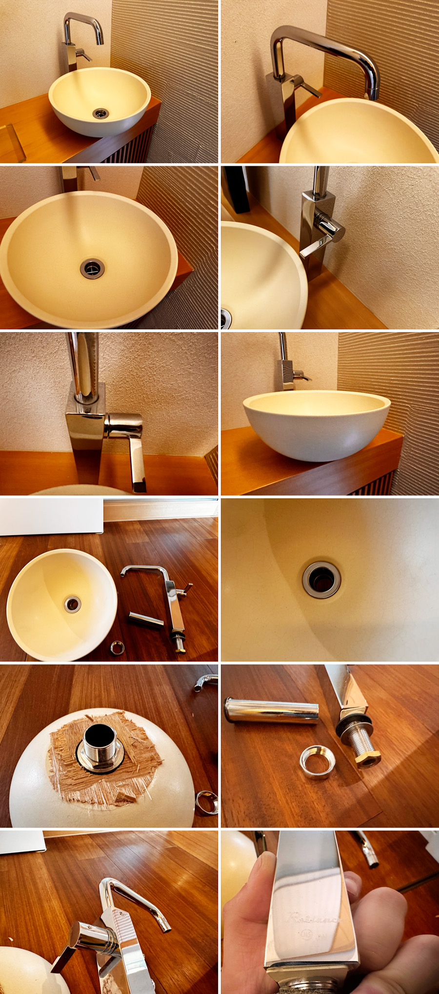 27090■手洗い器 手洗いボウル 陶器 水栓金具付き Φ275×H150■展示品/取り外し品/未使用品