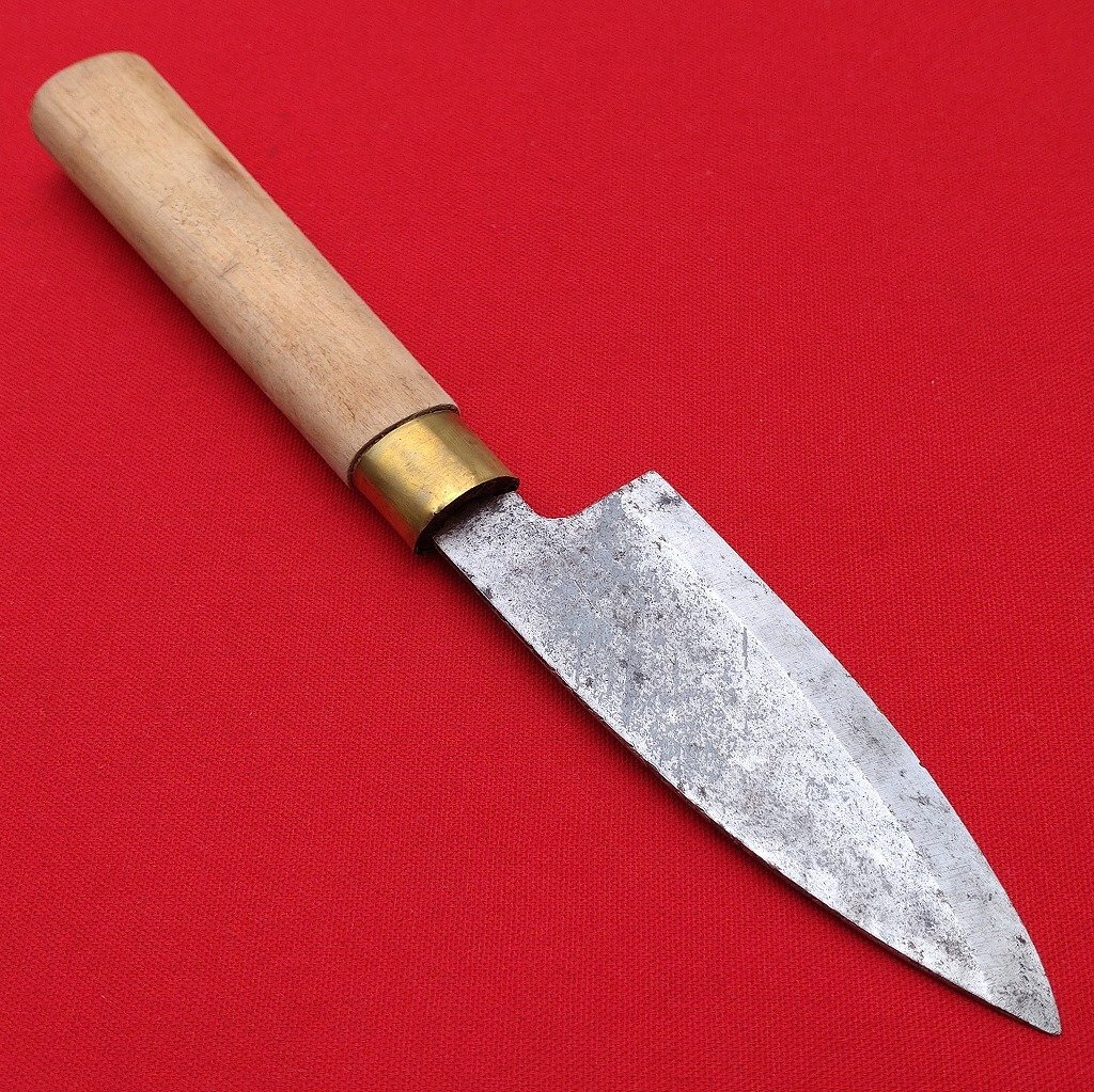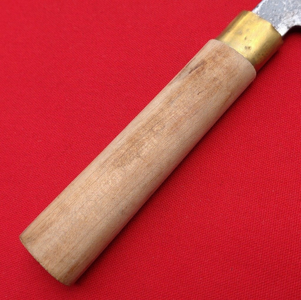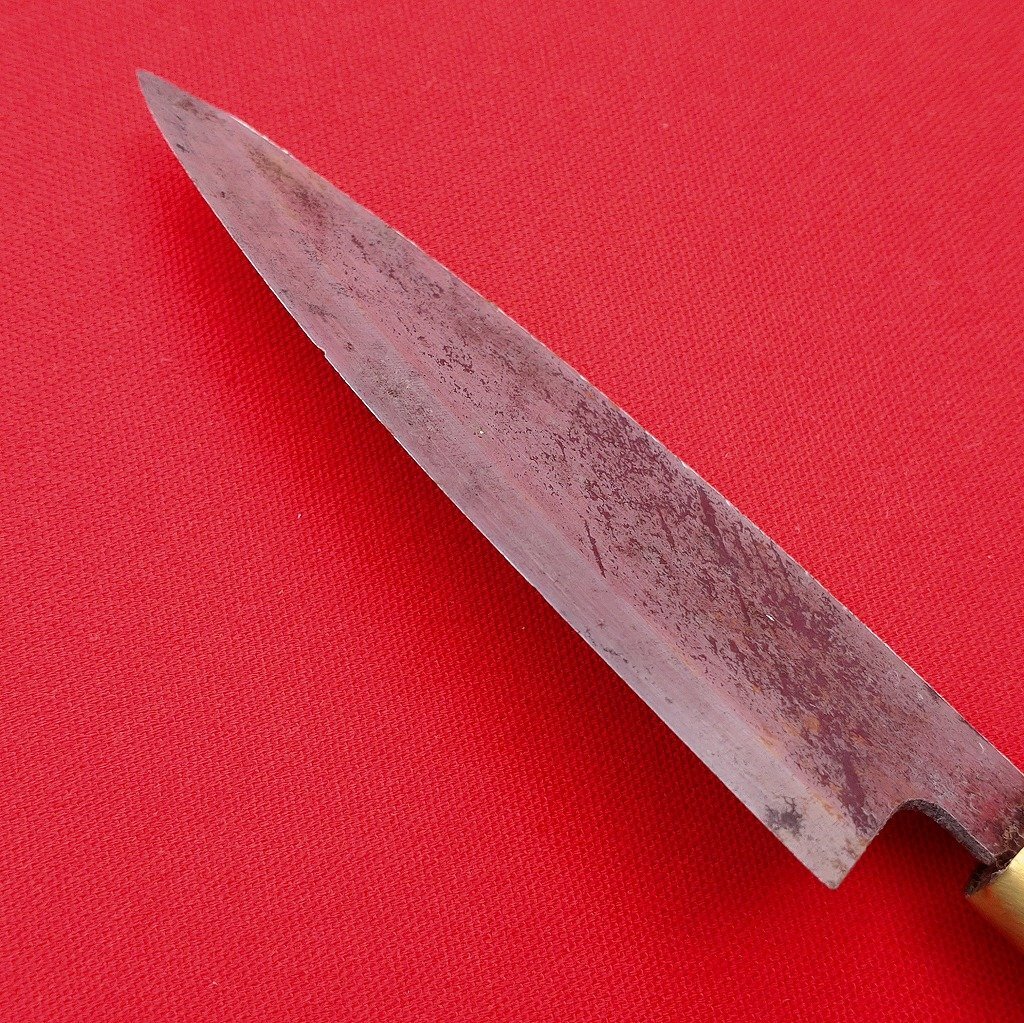 小出刃包丁 鯵切 刃長約96㎜ 峰厚約1.2㎜ 重量約55g 両刃 真鍮桂 小型包丁 庖丁 刃物 日本製  【2666】