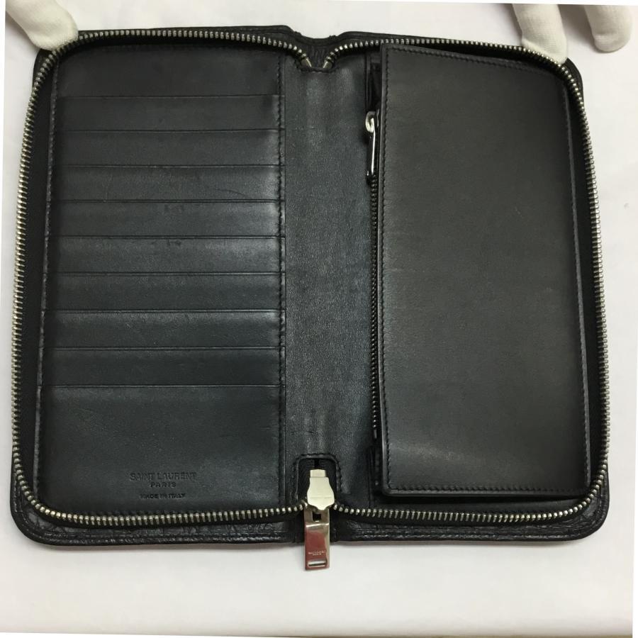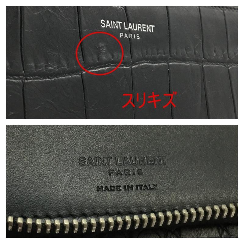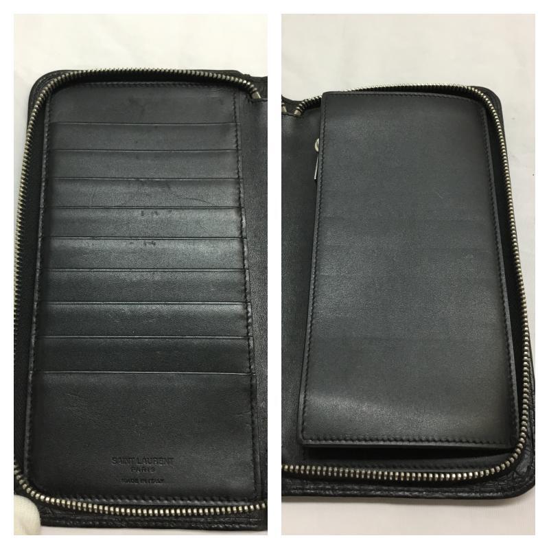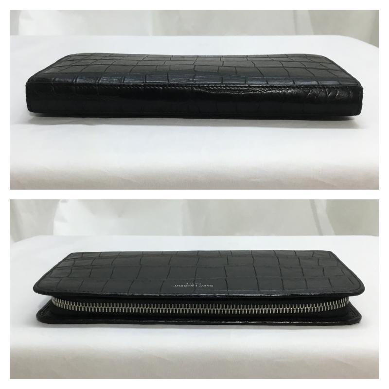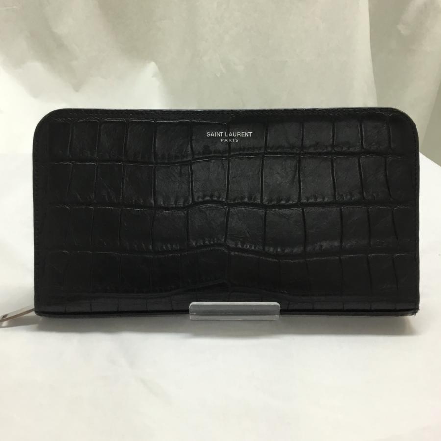 中古 サンローラン パリ 財布 SAINT LAURENT PARIS ラウンドファスナー 型押し 長財布 145846