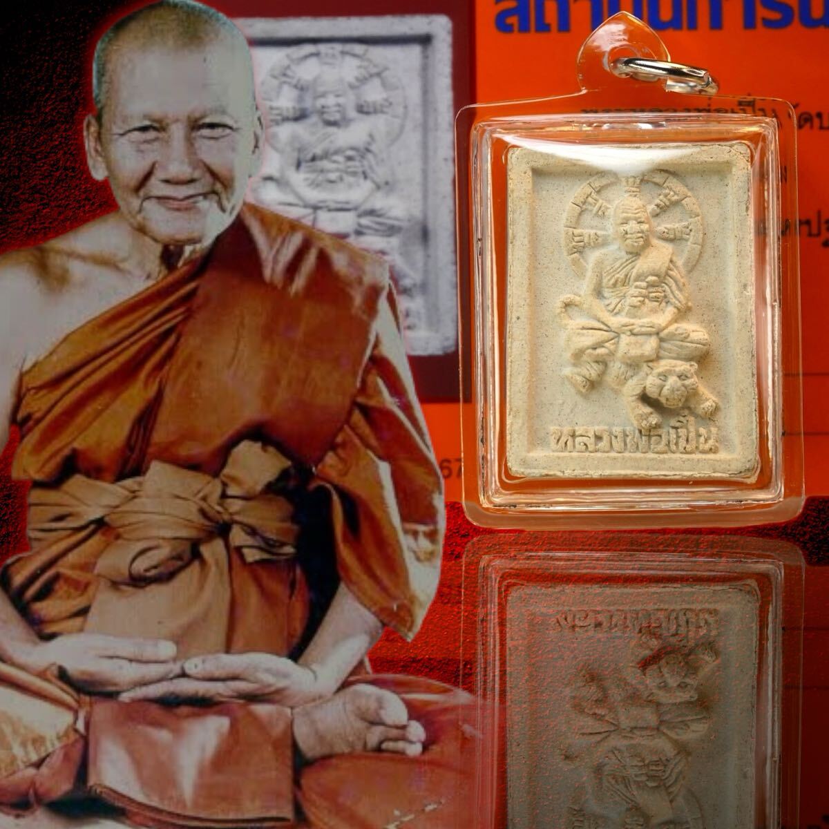 ルアンポーペン師は、戒師であるルアンポーデーン師をはじめ、ナコーンパトムの名僧ルアンポーニンなど、数多くの高僧から仏教経典や秘術を学び、特に「虎の術」に秀で、虎を象徴とする護符やヤントは強力な守護と威厳の象徴とされました。また慈愛を高める術にも優れ、人々から深く尊敬され、