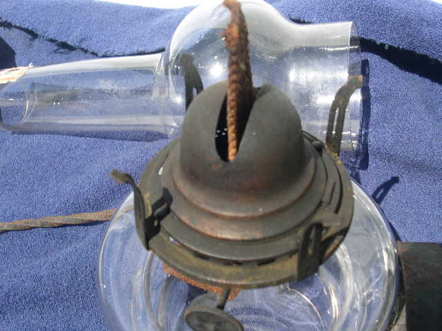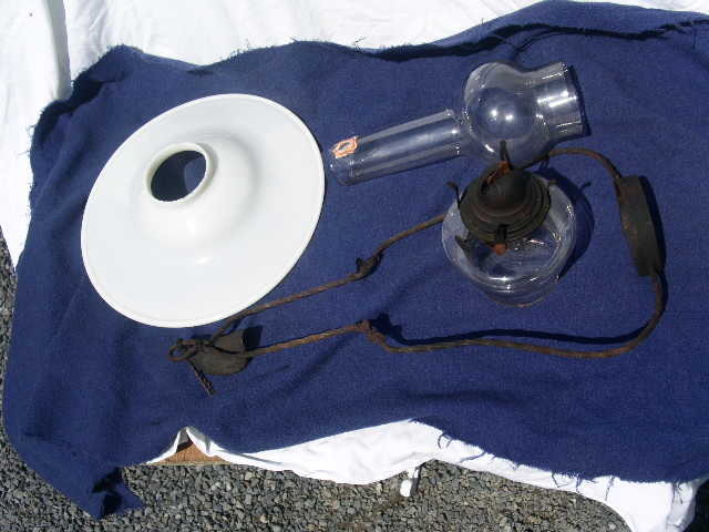 ★レトロ★  時代物 大型 乳白ガラス傘 吊り下げ オイルランプ 灯油ランプ オイルランタン(ビンテージ・アンティーク・インテリア