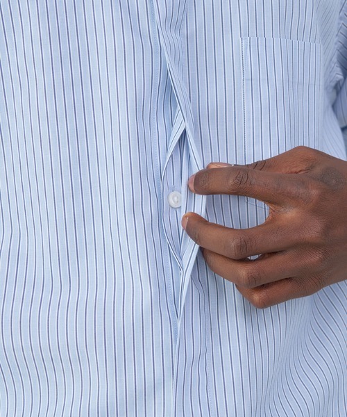 MUJI Labo ポプリン比翼 半袖シャツ / Lサイズ サックスブルーストライプ / ムジラボ Tシャツ シャツ 男女兼用 無印良品