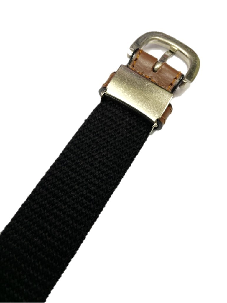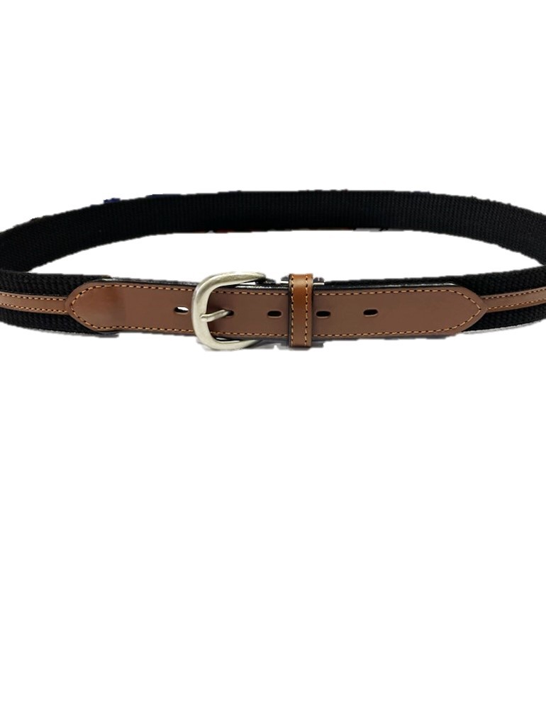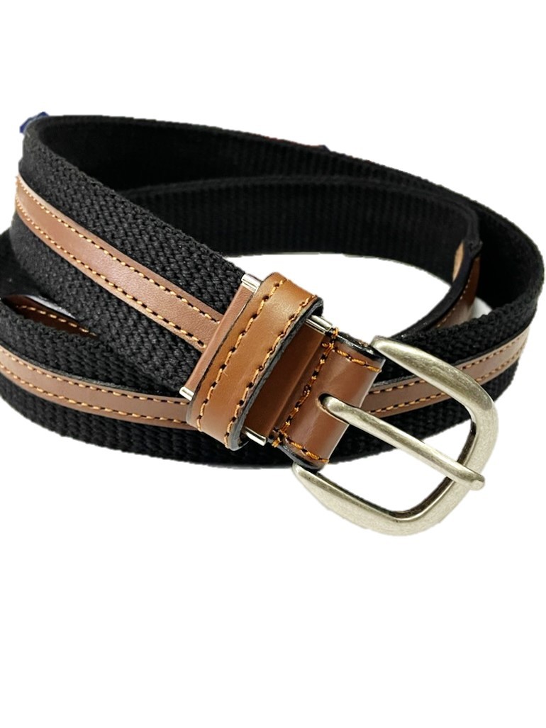 トラッド 日本製 アイビー レザーボーダーベルト ブラック×ブラウン シルバーバックル サイズ調整可能