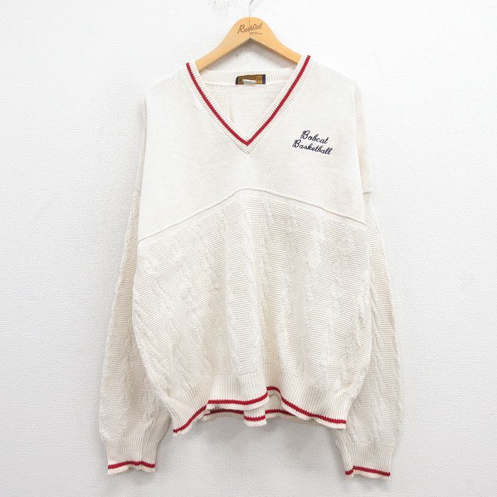 【商品名】 XL★古着 長袖 セーター メンズ 90年代 90s バスケットボール 大きいサイズ コットン USA製 生成り